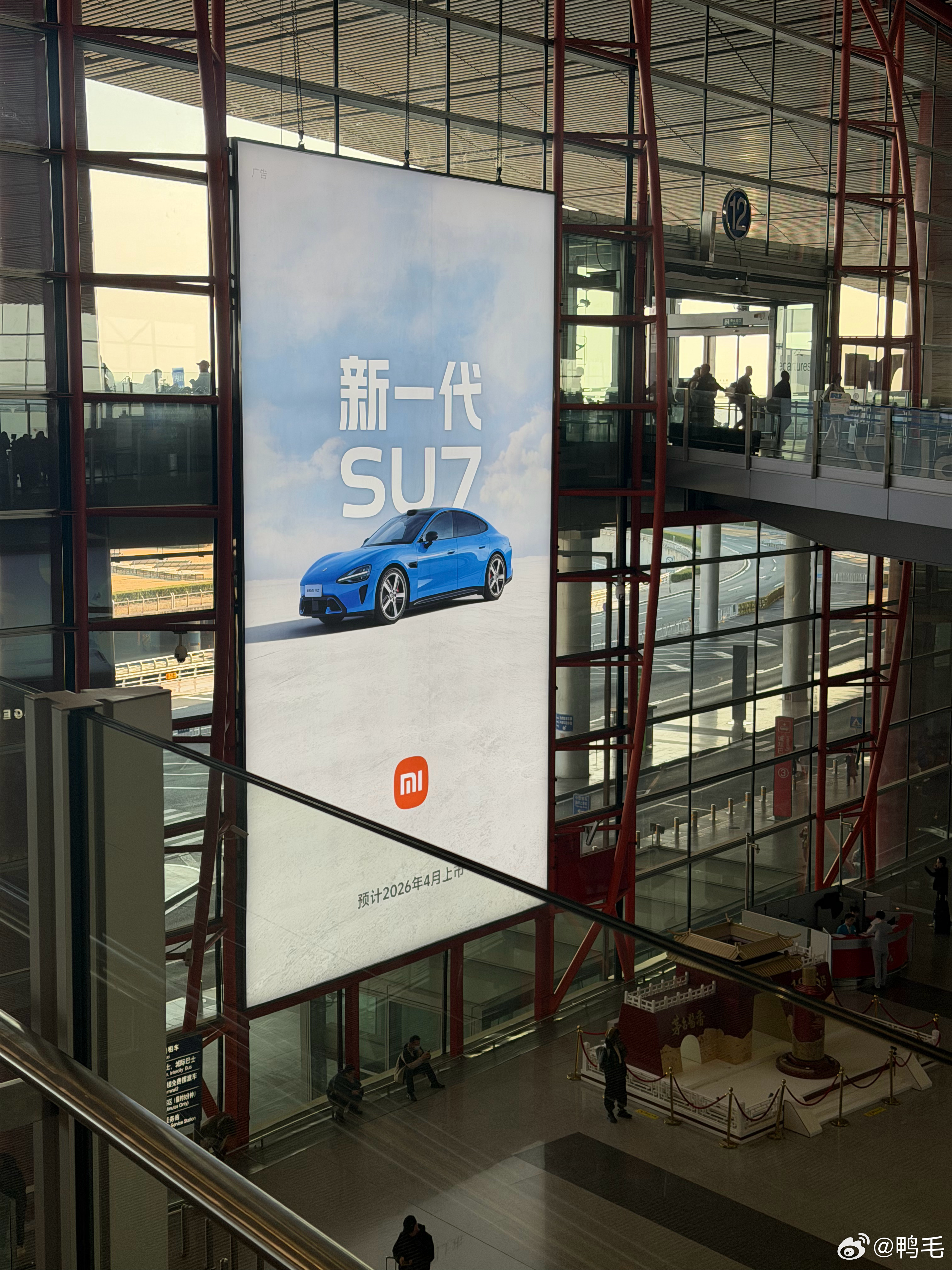 新一代SU7在北京首都机场的广告牌真大,一到接机的地方就看见了……今晚有什么惊喜