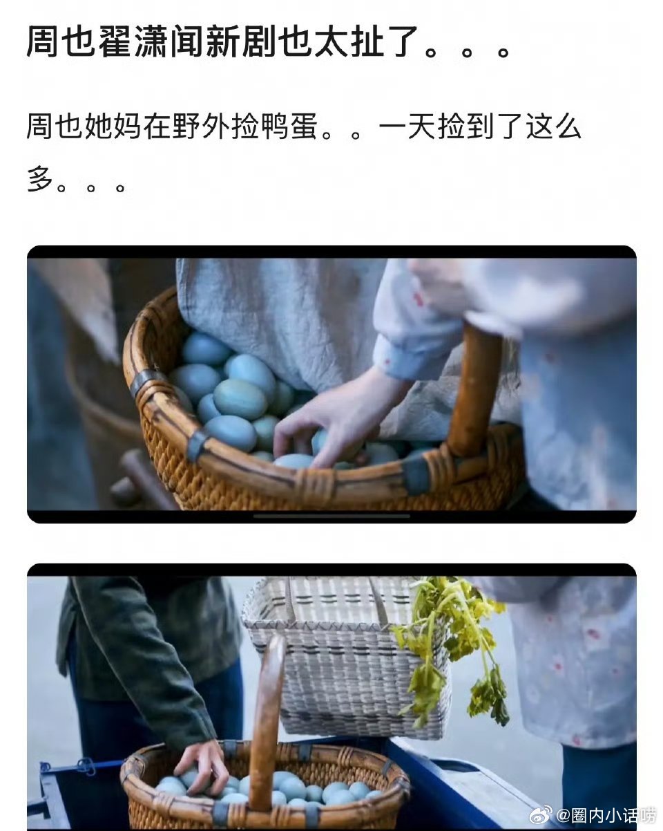 周也、翟潇闻新剧《你好1983》捡鸭蛋剧情也太离谱了吧?在那个年代一天捡了七十多个鸭蛋,编剧有考虑实际吗……