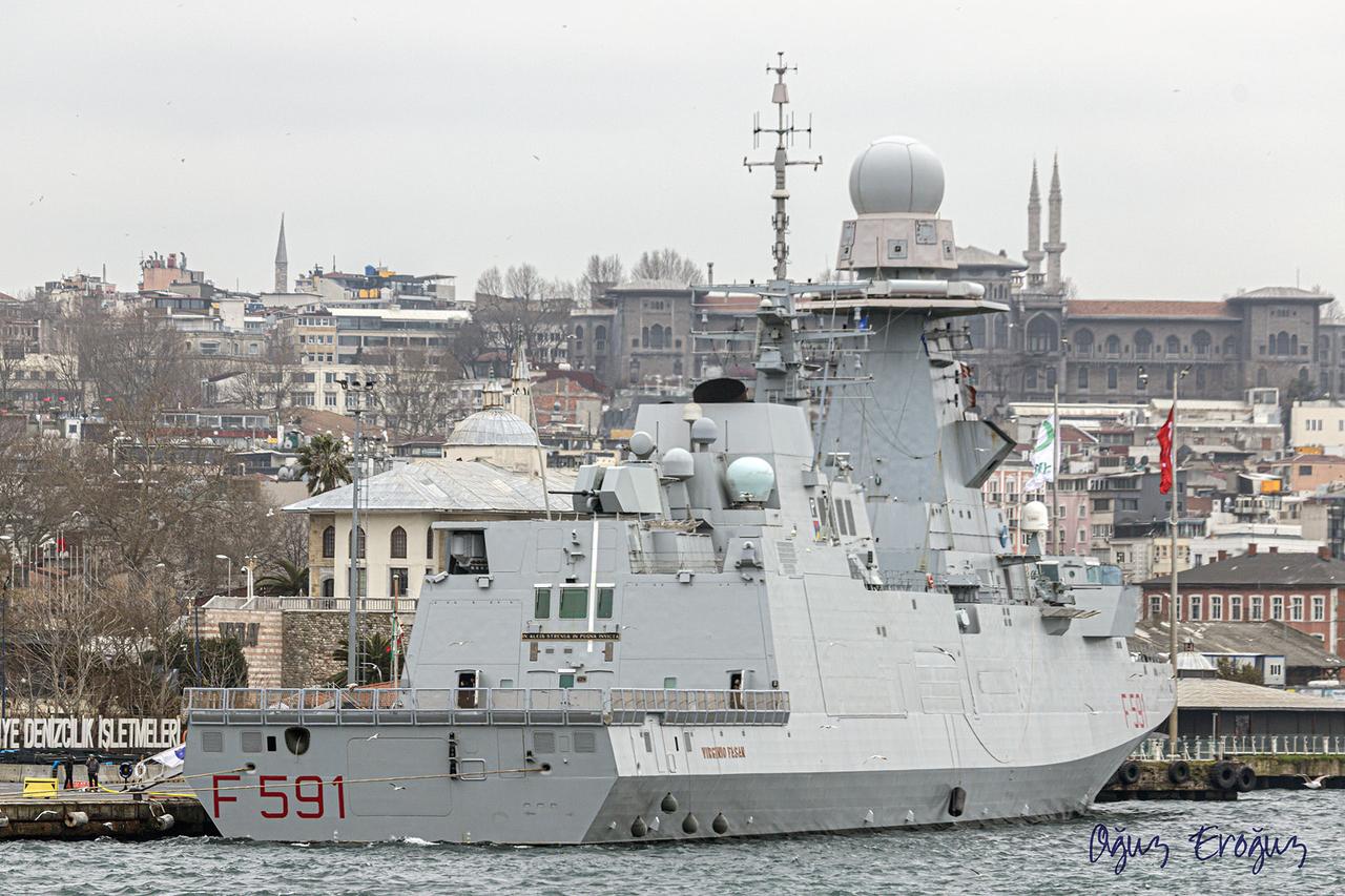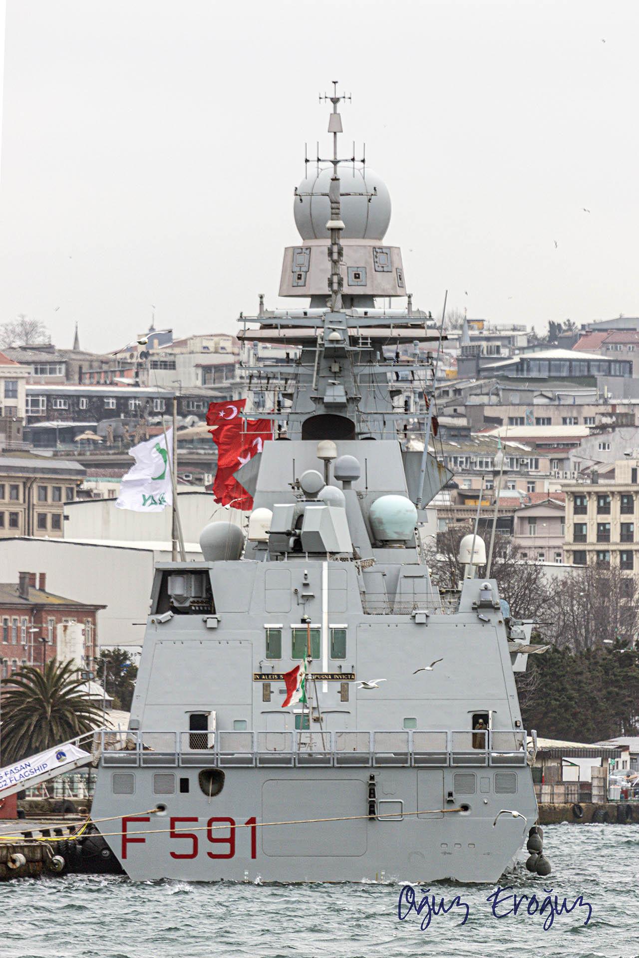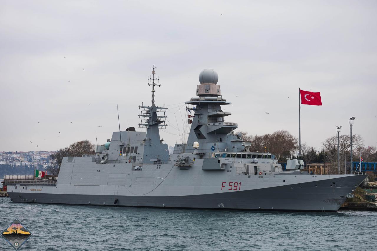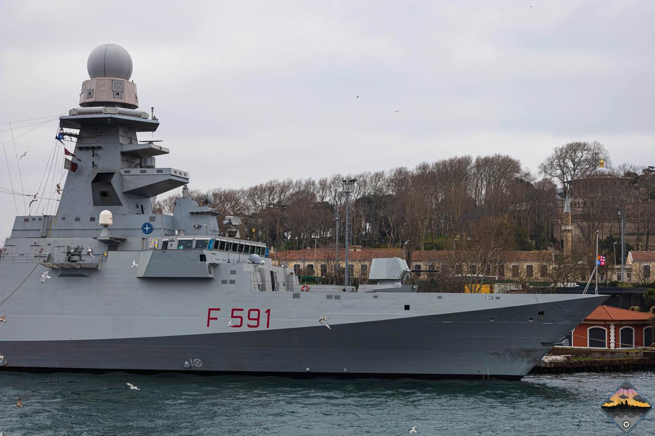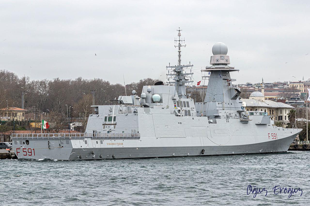 意大利海军 CarloBergamini(卡洛·贝尔加米尼)级VirginioFasan (维吉尼奥·法桑号巡防舰)F591停靠在萨拉伊布尔努码头,准备访问伊斯坦布尔港。维尔吉尼奥·法桑号于2009年5月12日在Fincantieri(芬坎蒂尼集团)造船厂开工建造,并于2013年12月19日正式服役。