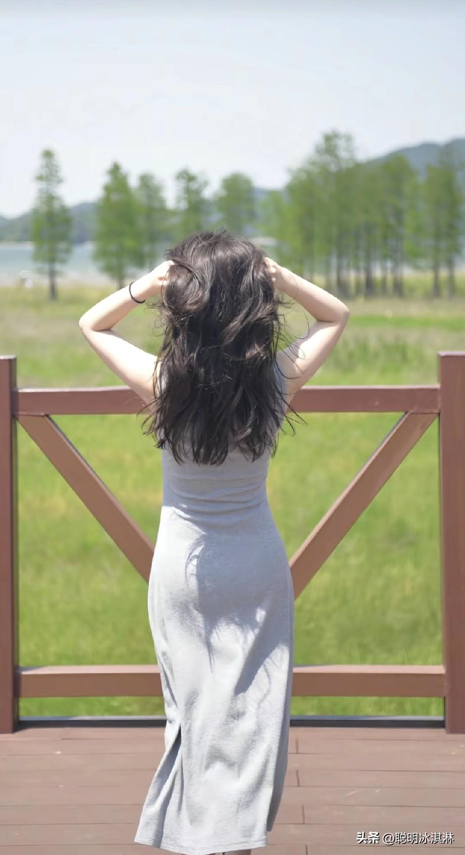 阳光下的女孩,微风轻拂发梢。