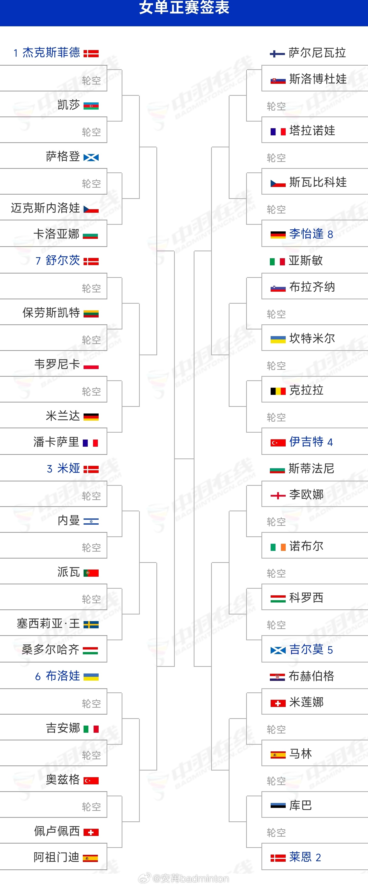2026年欧洲羽毛球锦标赛对阵签表出炉