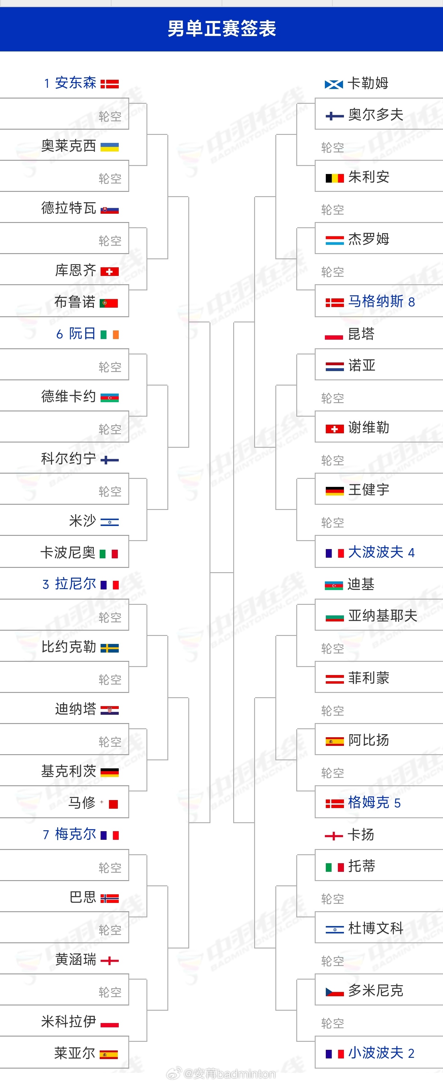 2026年欧洲羽毛球锦标赛对阵签表出炉比赛将于4.7-4.12在西班牙🇪🇸韦