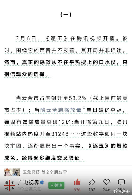 广电力挺逐玉 今天爽啦!