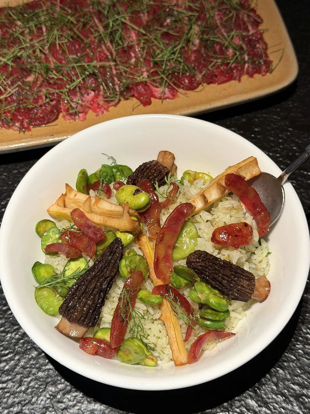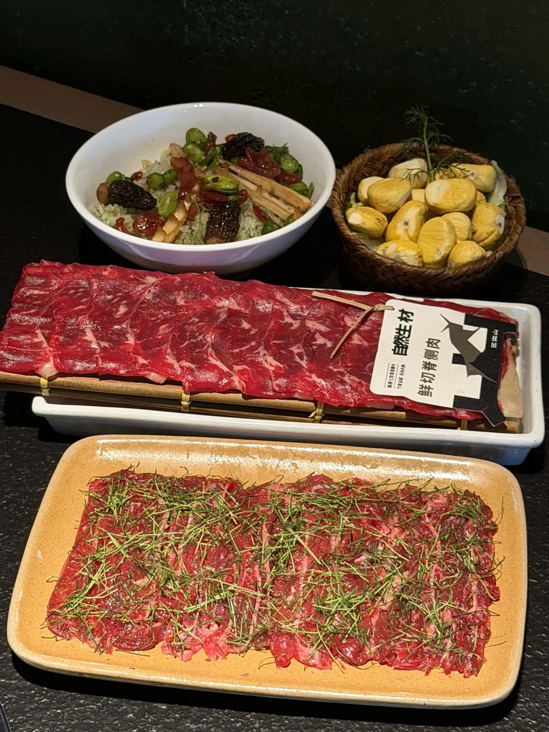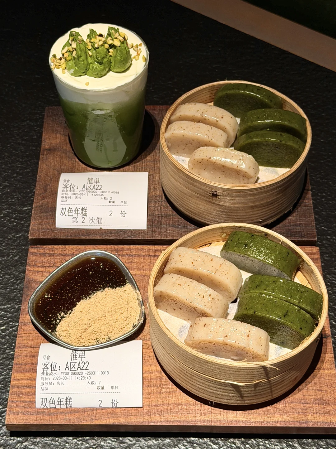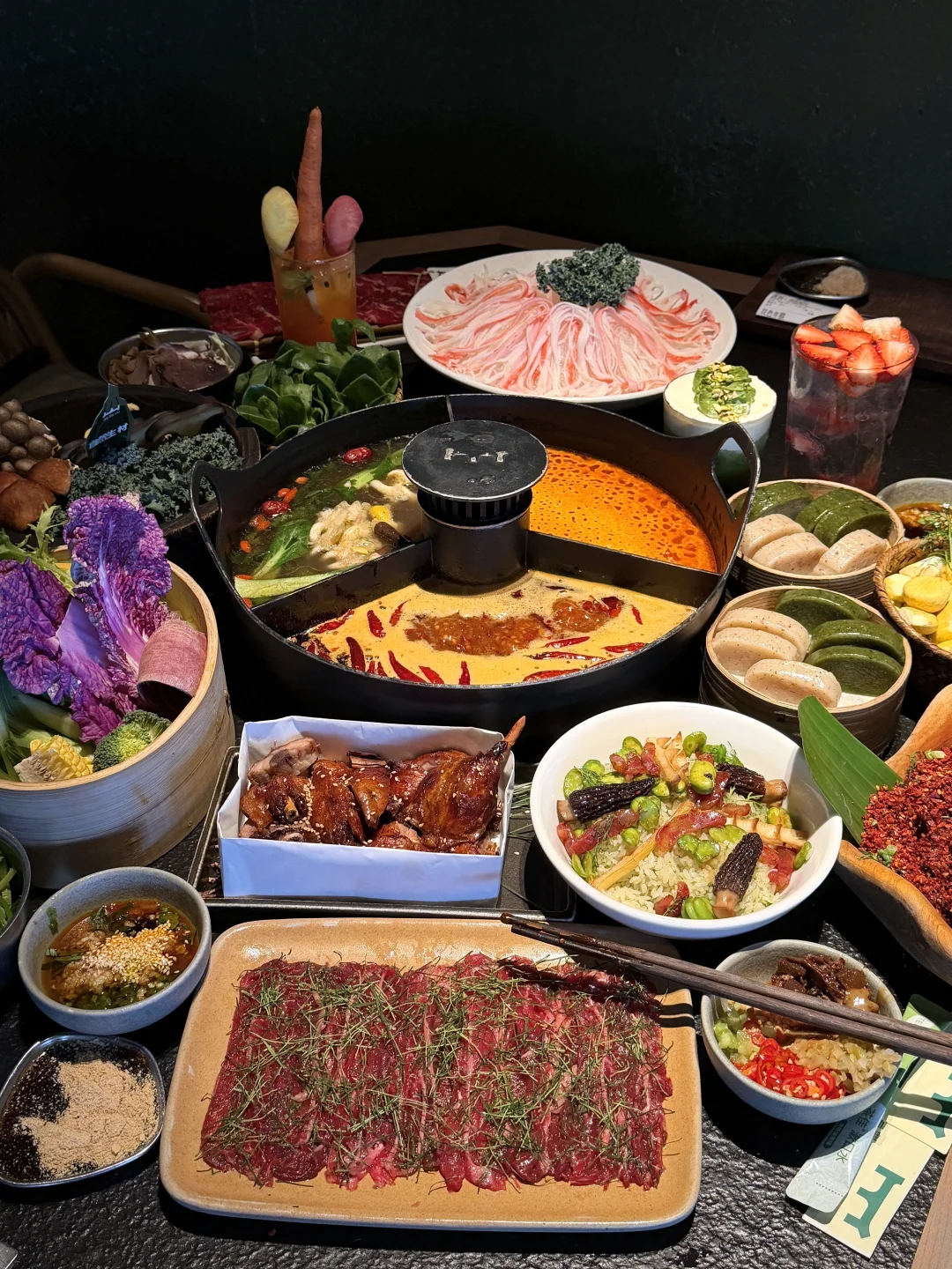 心心念念的双色年糕,终于在长沙吃到了!还配了红糖,味道浓郁又不觉得甜腻🤤糯叽叽的好好吃!! 主打的奔驰锅也好哇塞!随便涮啥都好吃的程度!!还有春色满园饭、抹茶浮云…各种漂亮饭和小甜甜,本甜品脑袋真的走不动路啊(三出山)