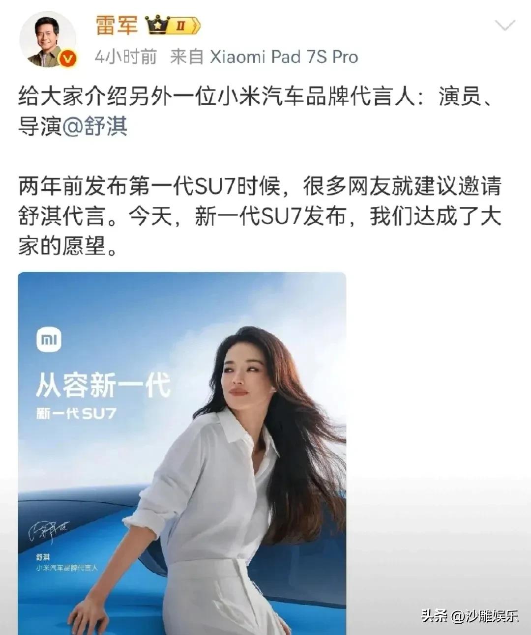 雷军,主打的就是听劝! 3月19日,雷军官宣了一个让全网“圆梦”的消息:舒淇正式成为小米汽车的品牌代言人! 为什么说是“圆梦”?这可不是什么商业密谋,这完全是一场由网友“云监工”促成的合作。事情是这样的:早在两年前第一代SU7发布时,就有脑洞大开的网友发现,“SU7”这串字母,读起来不就是“舒淇”吗? 于是评论区天天有人喊话雷军:“请舒淇!请舒淇!” 当时雷军其实就看到了,但因为第一代已经有代言人(苏炳添),只能作罢。结果雷总这心里一直惦记着这事儿,直到今天新一代SU7发布,他大手一挥:安排!终于把网友画的“大饼”给烙熟了! 现在的网友最吃哪一套?不是高高在上的说教,而是“双向奔赴”的宠溺。雷军这一招,直接把品牌和用户的距离拉成了“闺蜜”关系。网友只是随口一唠,雷军却当真了两年。这种“你们尽管提建议,提不了算我输”的态度,让老粉直呼:“这种被偏爱的感觉,也太爽了!” 这不仅仅是名字像那么简单。舒淇在国际上的咖位、零黑料的路人缘、以及那种漫不经心的松弛感和高级美,恰好对应了小米SU7主打的“好看、安静、聪明”的质感 。如果说苏炳添代言是代表了“速度与激情”(因为他也姓SU,且跑得快) ,那舒淇代言则代表了“颜值与气质”。一个主内(性能),一个主外(美学),这波“双SU”组合,属实是把代言玩明白了。 别家的老板忙着看数据,雷军忙着看评论区。从做手机到造车,雷军好像总能精准捕捉到网友的梗。这种“去总裁化”的亲民互动,让小米汽车还没正式亮相,就已经在舆论场先火了一把。网友调侃:雷总,要不您下次直接开直播让网友众筹选颜色算了? 说实话,在如今这个流量为王的时代,请大牌代言不稀奇,稀奇的是请得这么“贴脸”。 雷军找舒淇,表面上看是在玩梗,实际上藏着极致的产品用户思维。他没有选择只看大数据推送的“顶流”,而是去倾听那些在评论区里玩梗的真实准车主的声音。这种营销,花的是代言费,赚的却是人心。 这就好比你去朋友家做客,随口说了一句“这沙发要是蓝色就好了”,下次去发现他真的换成了蓝色——这种被尊重的感觉,谁顶得住? 美人配好车,再加上一个听劝的老板,小米SU7这次的“舒淇风”,确实刮得让人很舒服。