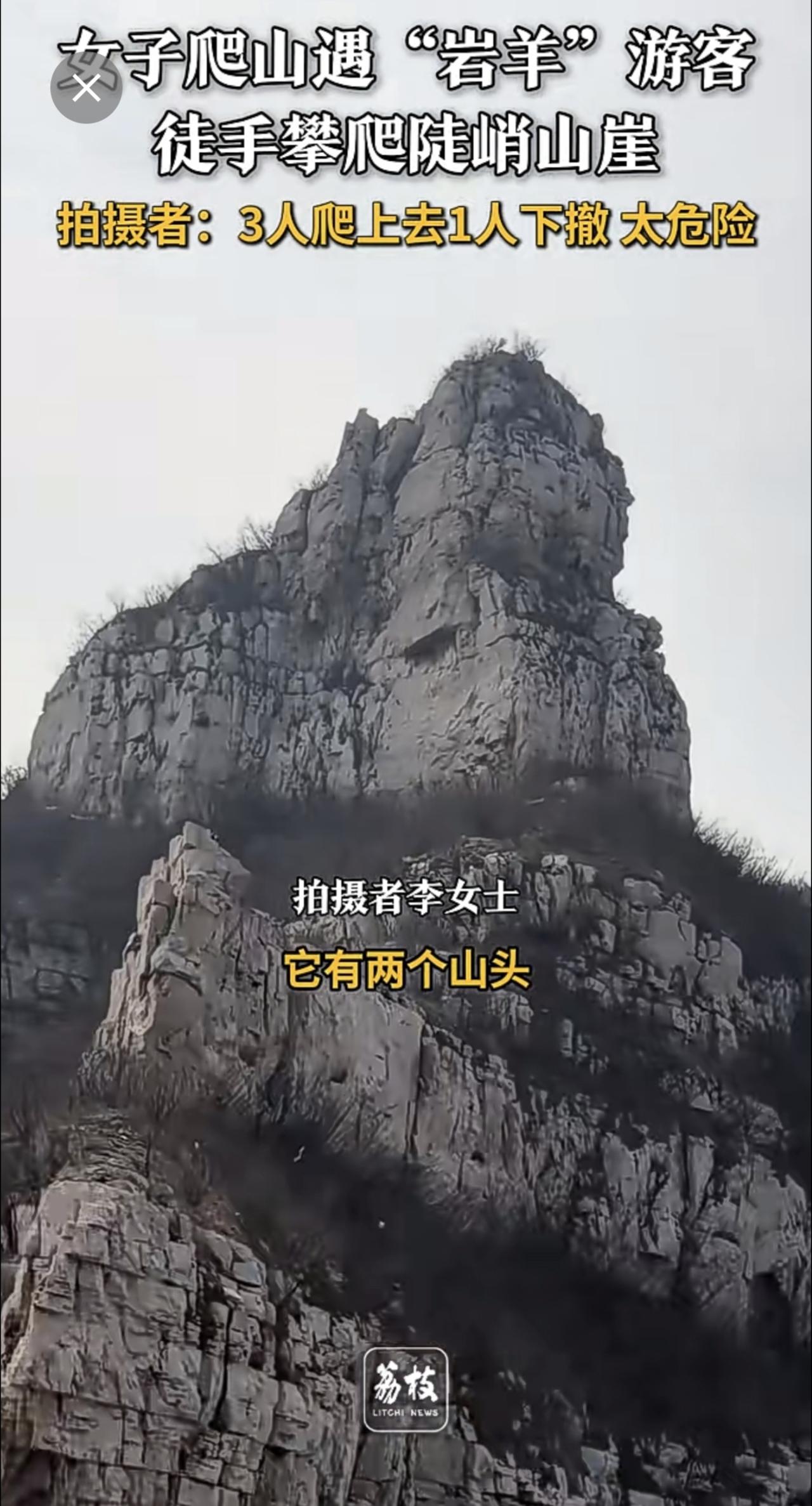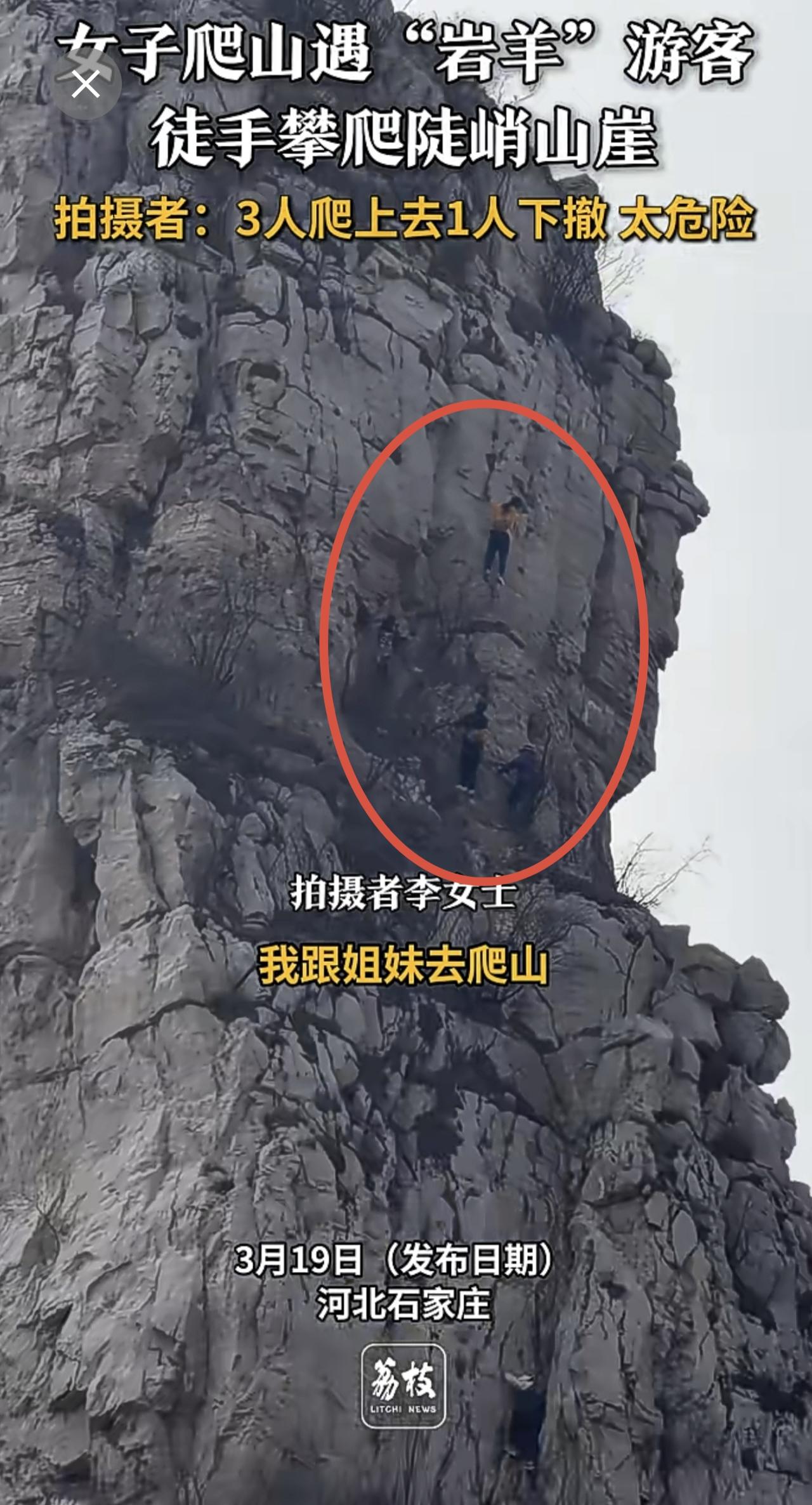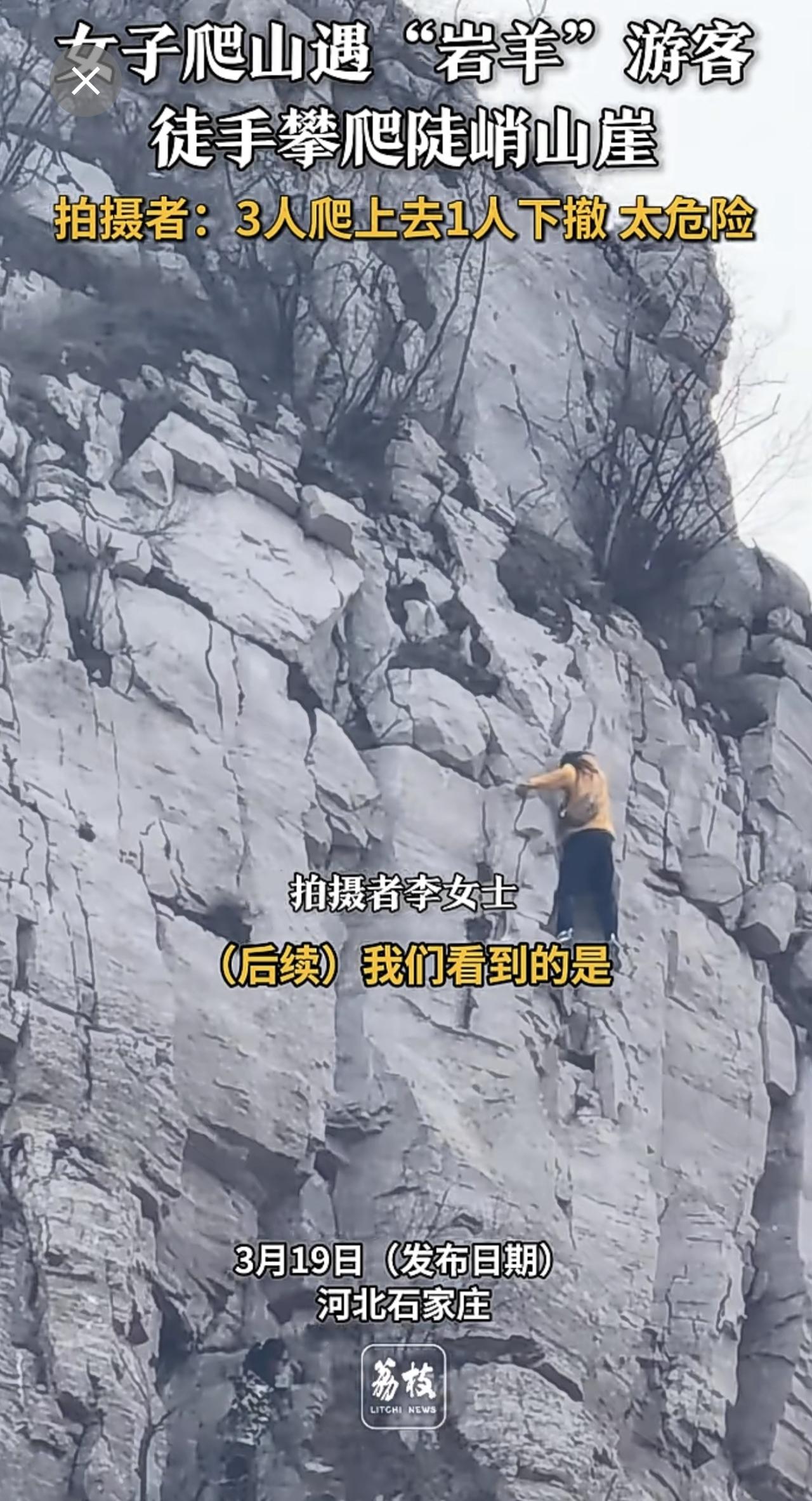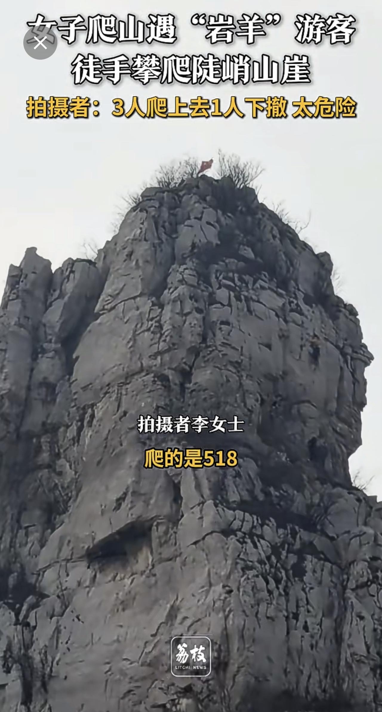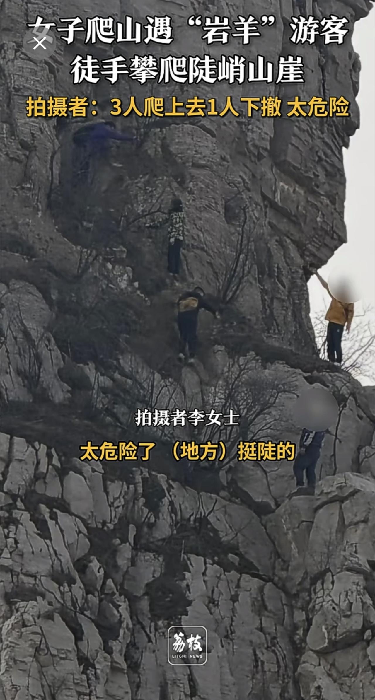 4人徒手攀爬几乎垂直山崖 游客回应4人徒手攀爬垂直山崖 :3人爬上去1人下