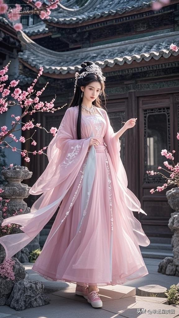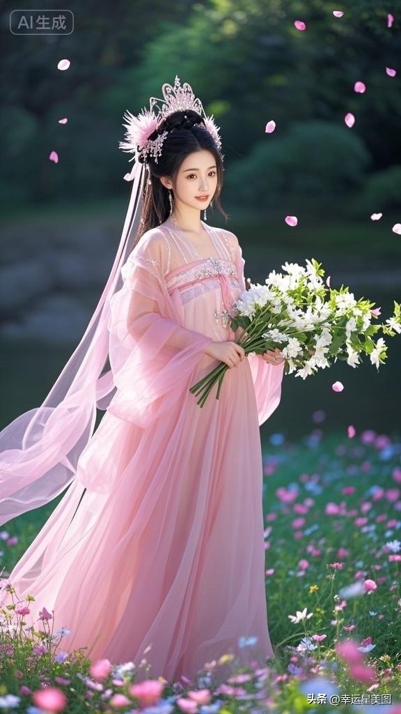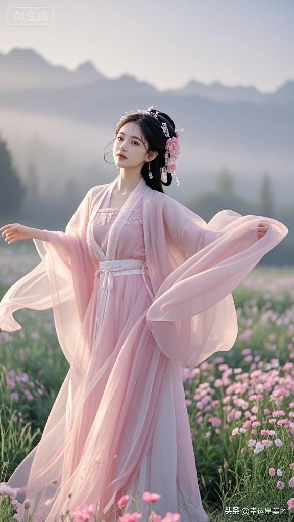 仙气飘飘的汉服少女,置身花海,如梦如幻