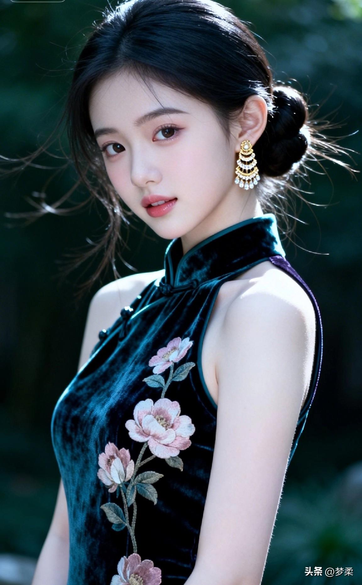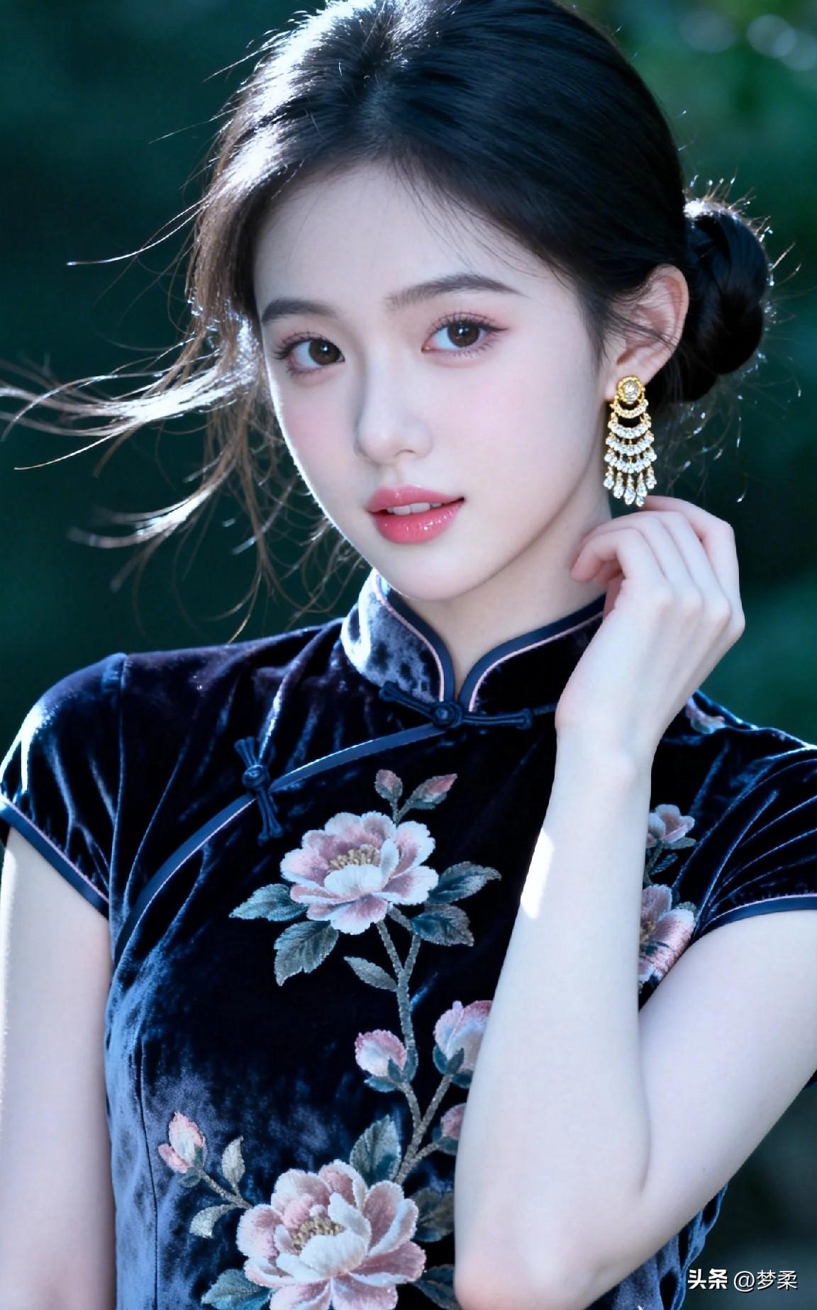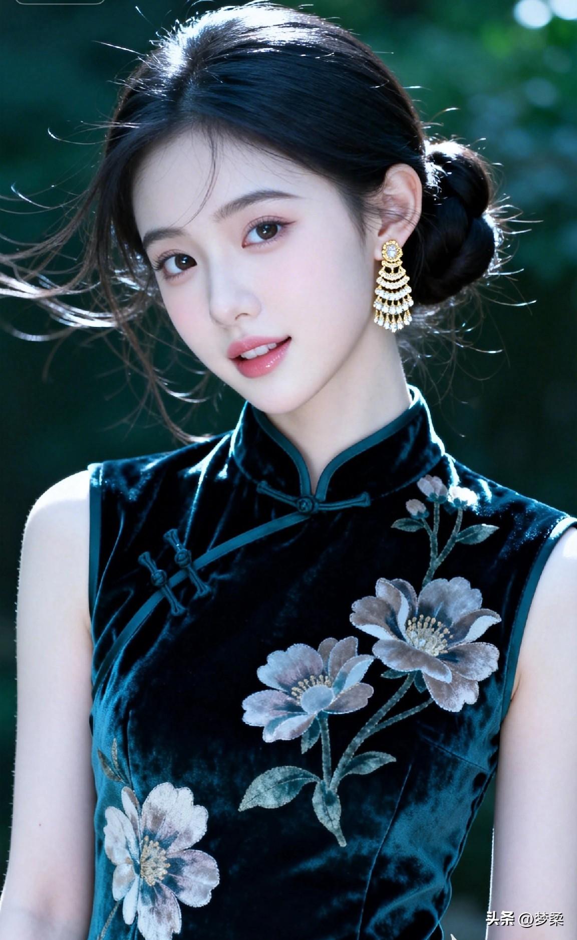 优雅黑丝绒旗袍,花枝招展,梦回民国