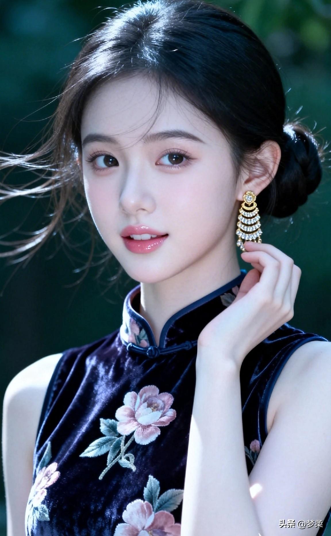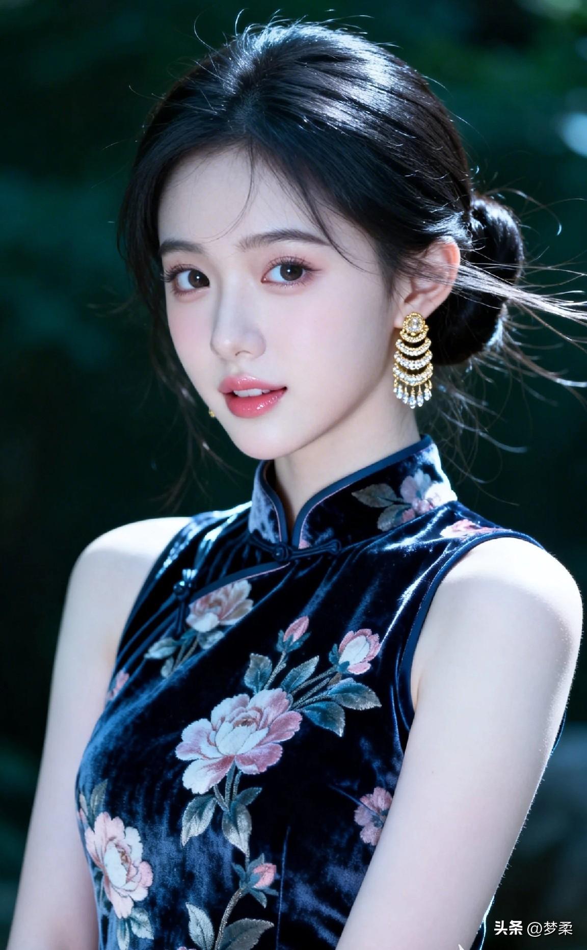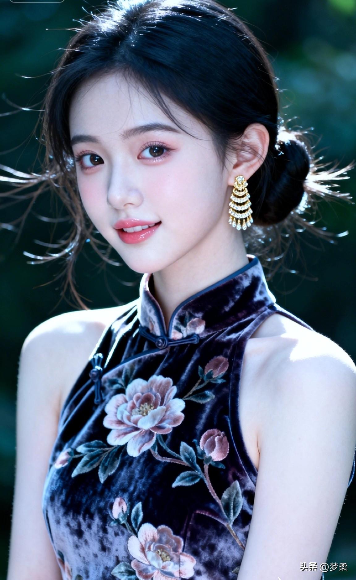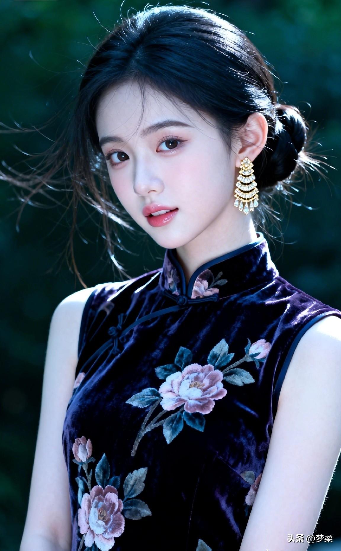 优雅黑丝绒旗袍,花枝招展,梦回民国