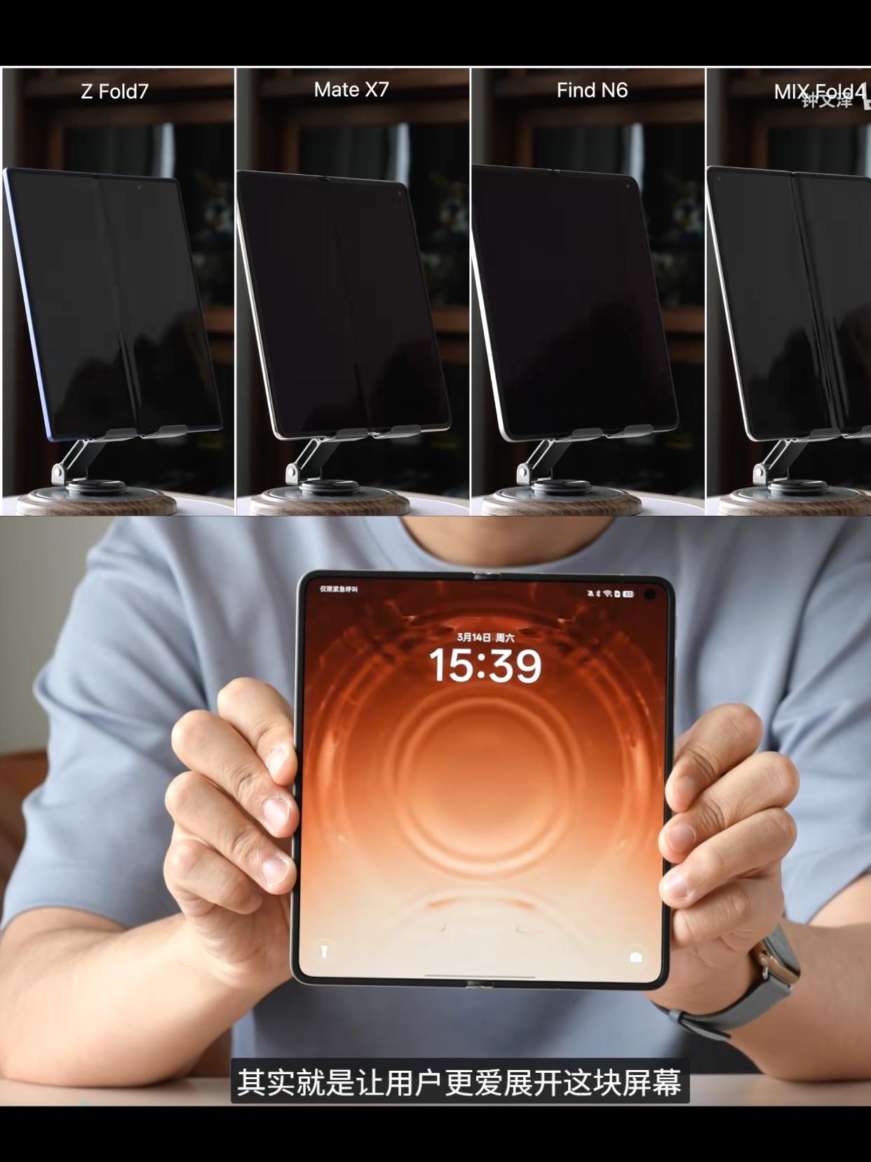钟文泽如此评价,Find N6真有这么好? 钟文泽新视频,拿刚发布的OPPO Find N6,对比目前市面上主流大厂的旗舰折叠屏,没想到啊,OPPO居然这么强啊? 重量和厚度Find N6跟其它机型比倒是差不多,都很轻薄,但折痕居然强这么多啊?同个角度,同样的光线,Find N的就是几乎看不到折痕,其它机型多多少少都有,离谱啊 而且OPPO对折叠屏的大屏理解很到位,全景自由窗让你能高效利用屏幕空间,AI手写笔还能带来跟pad接近的生产力体验,不管是影音娱乐还是文档办公体验都很优秀 拍照方面OPPO也是全都要,三星有的2亿OPPO有,华为有的色彩镜头OPPO有,哈苏2亿超清四摄主打一个全面! 更平整的大屏,更易用的系统,更具生产力的工具,就是让用户更愿意打开内屏使用,而不是跟以往的折叠屏一样,到手大部分时间都在用外屏 只能说OPPO是真的找对方向了,这款Find N6估计会卖爆啊?听说现在1tb版本的就已经卖断货了,大家都知道1tb香,都抢着买啊,接下来内存还会继续涨价,早买大内存早享用,还更流畅,对了,看到明天理想汽车的平台也会上架Find N6,感觉这台折叠屏很适合新能源车主哦?