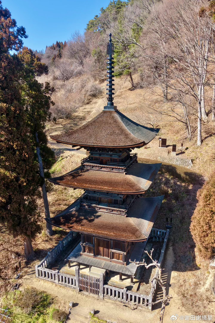 大法寺三重塔。日本国宝古建筑。