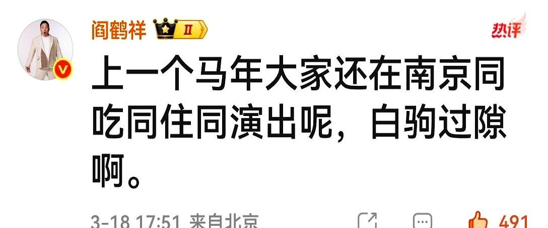 张云雷和老队长阎鹤祥聚餐了!就一句“跟老队长相聚”,直接把人拉回十二年前。 2014年,也是马年。那时候壮壮还是德云四队的队长,队里有张云雷、郭麒麟。一转眼,大伙儿都长大了。 这十二年,二爷的路子真宽。从唱《探清水河》的小辫儿,到开个人演唱会的歌手,最近还忙着新写真《不是这张》。 阎鹤祥也没闲着,在综艺圈里找到了自己的位置。俩人都在各自的跑道上发光,但这份情谊没变。 看到这张合影,真有点感慨。当年的德云四队,你还记得谁?