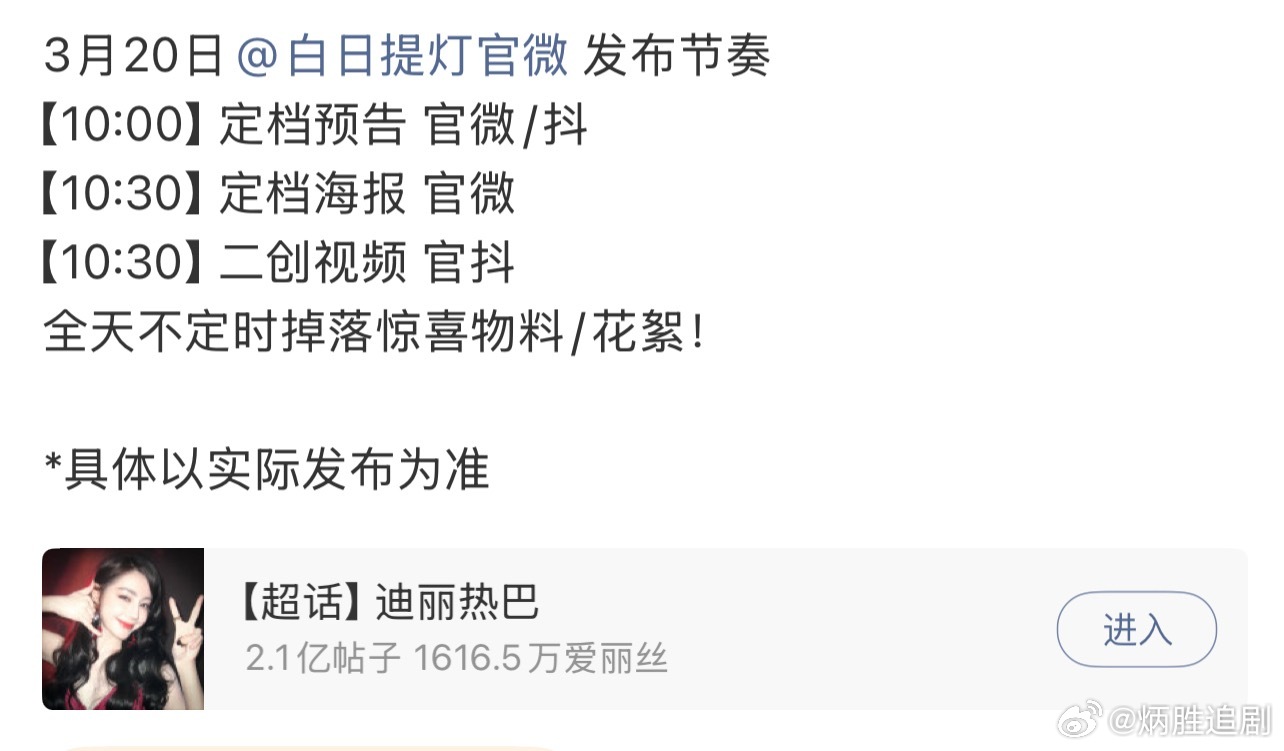 迪丽热巴新剧白日提灯明日要定档了!金鹰视后之后很久没有代表作了,演技口碑、市场号
