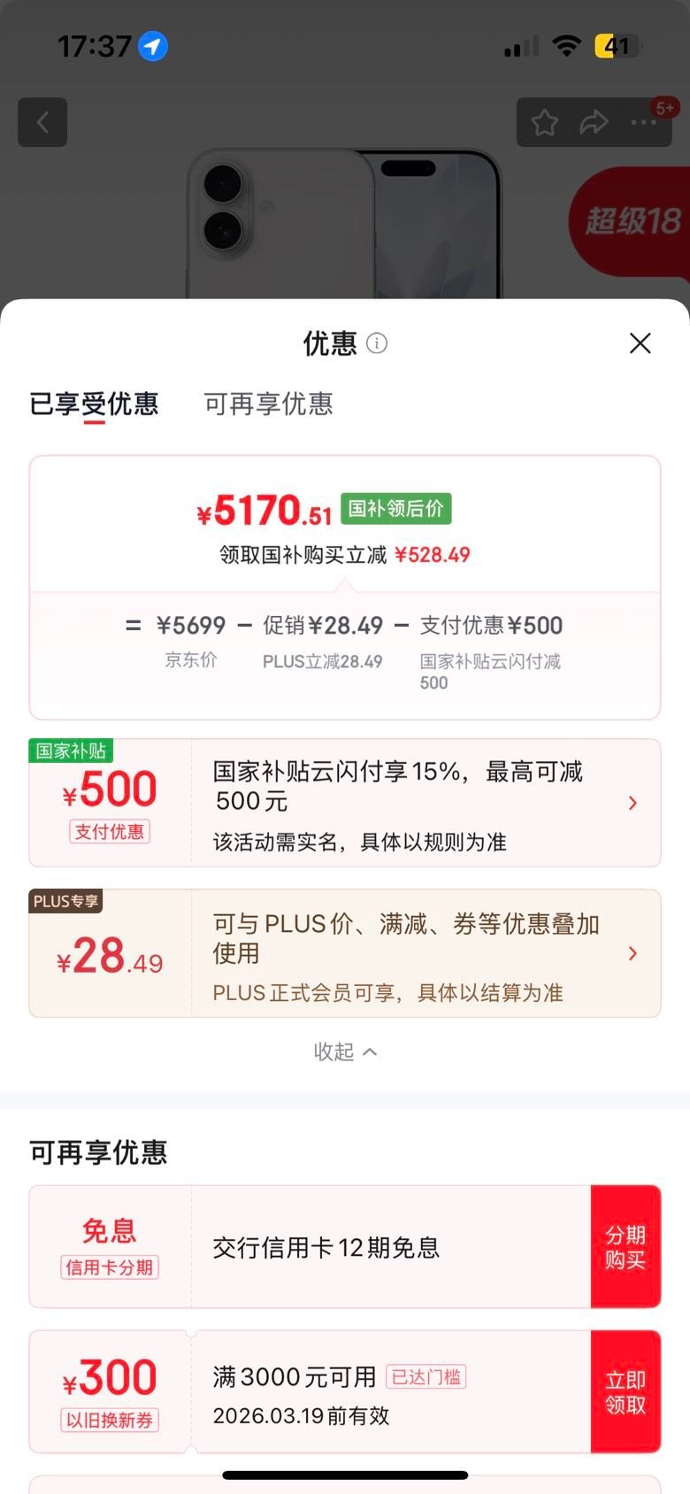 iPhone今天上午说苹果周年庆iPhone不太可能降价,下午去看了眼价格,iPhone air和17标准版还是能在国补下五千左右买到的