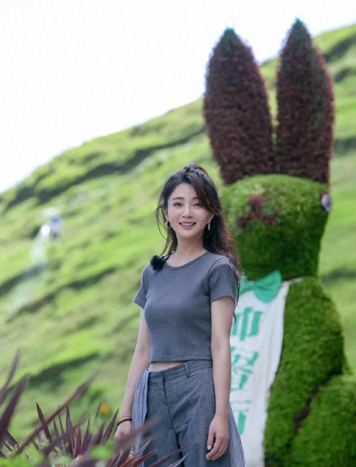 46岁殷桃太会穿!高级灰穿搭范本 被46岁殷桃的高级灰穿搭狠狠拿捏✨!修身T