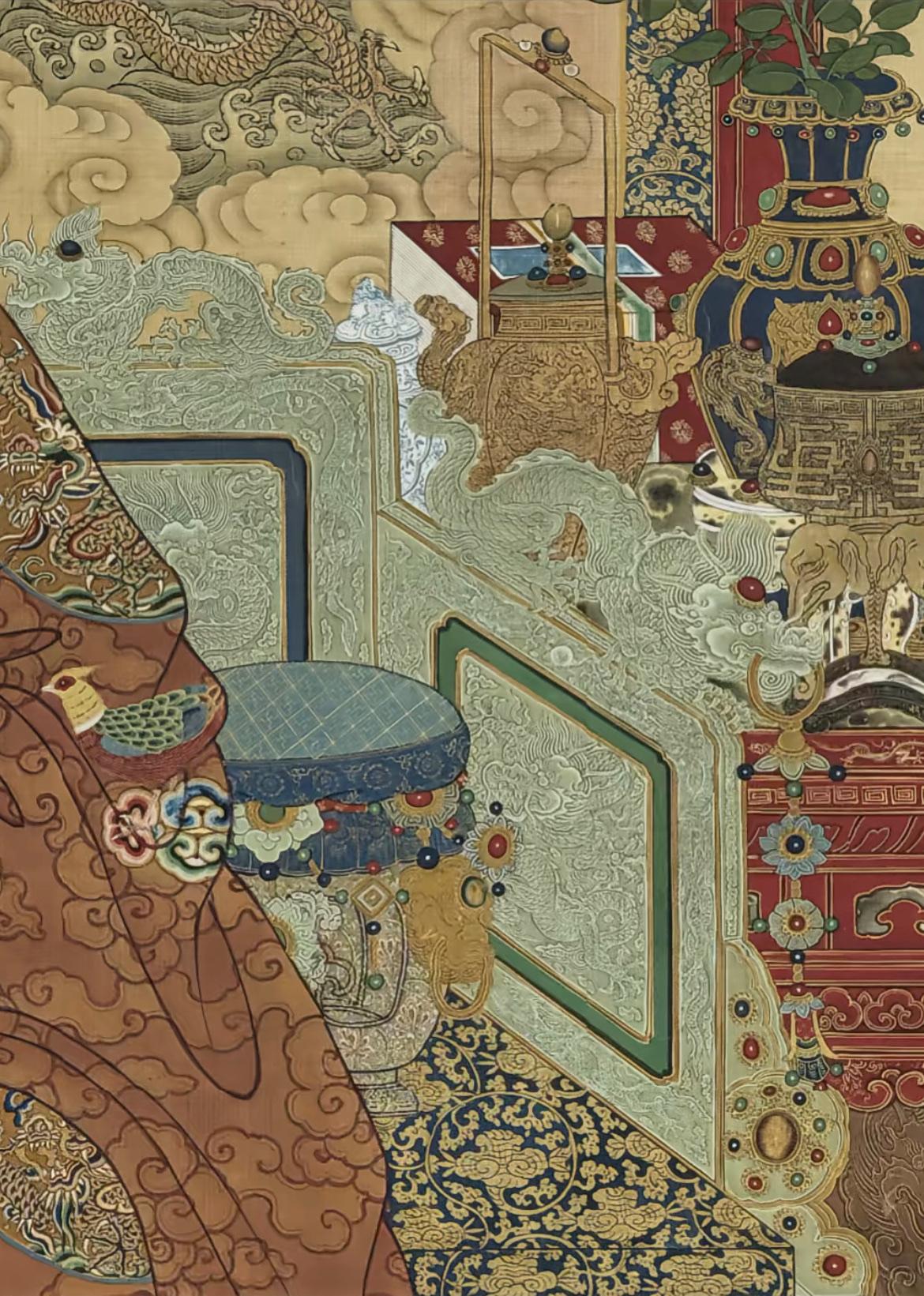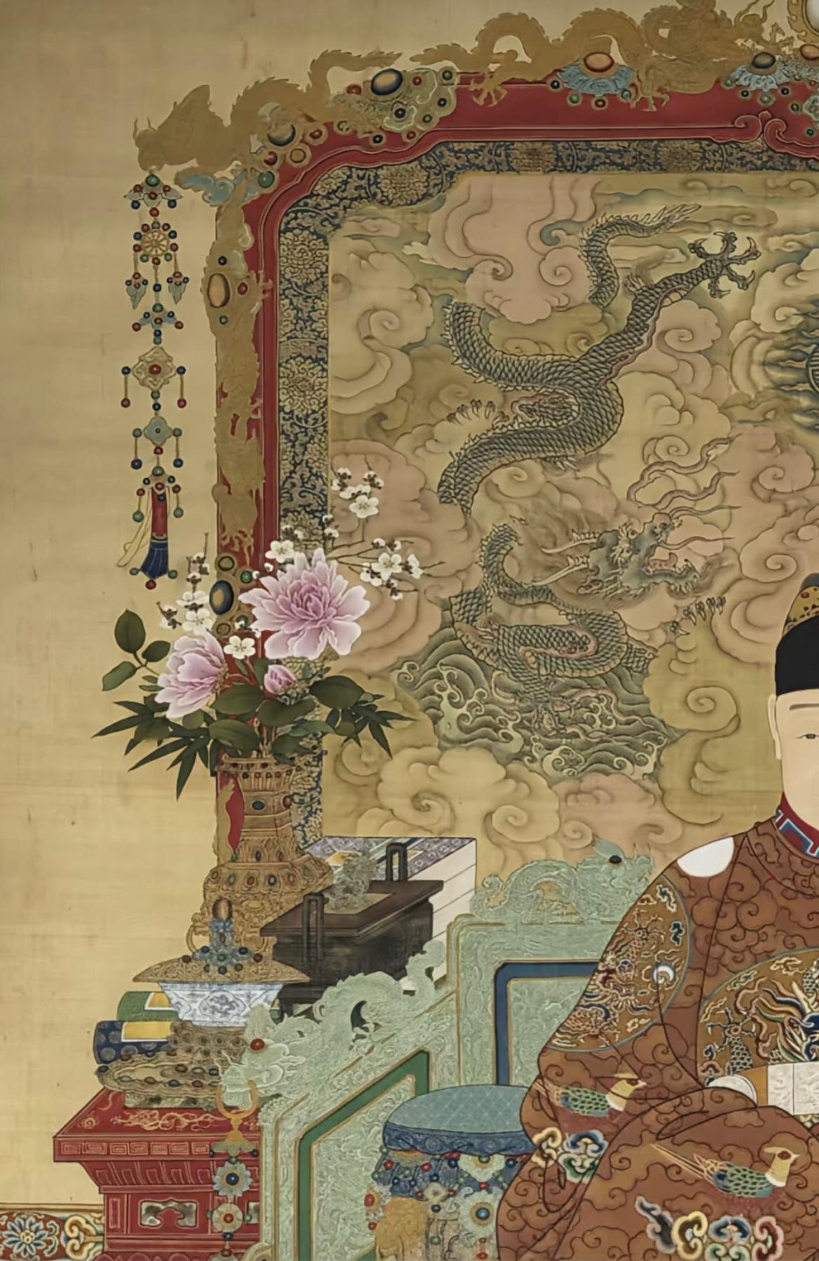 木匠皇帝天启帝的画像,龙椅细节满满,工艺巧夺天工,布置顶级审美,感觉像是天启帝亲