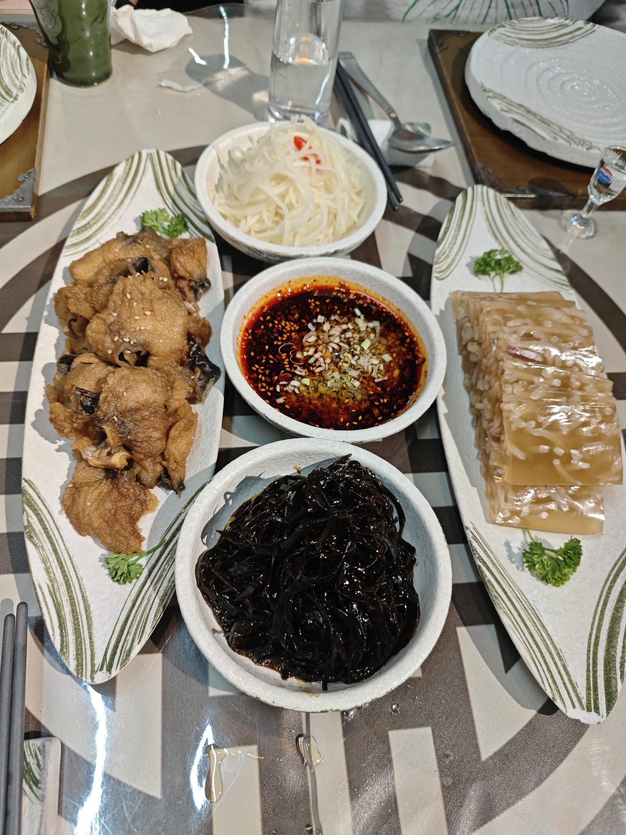 一碗“复杂面” 应朋友之邀,到西安东关正街吃一碗真正的“复杂面”。“复杂面”是朋友对这家面的戏称,说这家面的调料很复杂,有四种拌面的热菜,还有四种小凉菜。 说起这“复杂面”,这可是朋友的最爱,原来在南郊,离他的单位很近,就经常吃这家的面,吃上了瘾,曾经给我们说过这家“复杂面”有多好吃,从而想往之。 朋友这几年也不在西安,年前回来时,这家面铺已经搬家了,最近才打听出来这家面铺搬到东关正街了,知道我们最近回来了,就相约吃一碗“复杂面”。 我们来到时,他已经等在门口了,这家面铺,客人满座,看来生意不错。朋友订好桌,点好菜,还拿了瓶蓝瓷故宫酒,想着吃一碗面,原来是个“酒肆”,我说吃碗面还这么复杂,他笑着说“复杂面”嘛,当然要复杂一点了。[捂脸] 打开酒瓶,一股酒香随之而来,感觉很不错,相约每人只喝二两,酒好也不能贪杯哈! 吃菜喝酒,碰杯开谝,说说过去,谈谈未来,国内国外,旅居旅游,含饴弄孙,天伦之乐,家长里短,生活静好! 二两酒下肚,一碗面补充,丰富我的吃面文化,唤醒他的吃面记忆,这碗“复杂面”撩扎咧![捂脸][捂脸][捂脸]