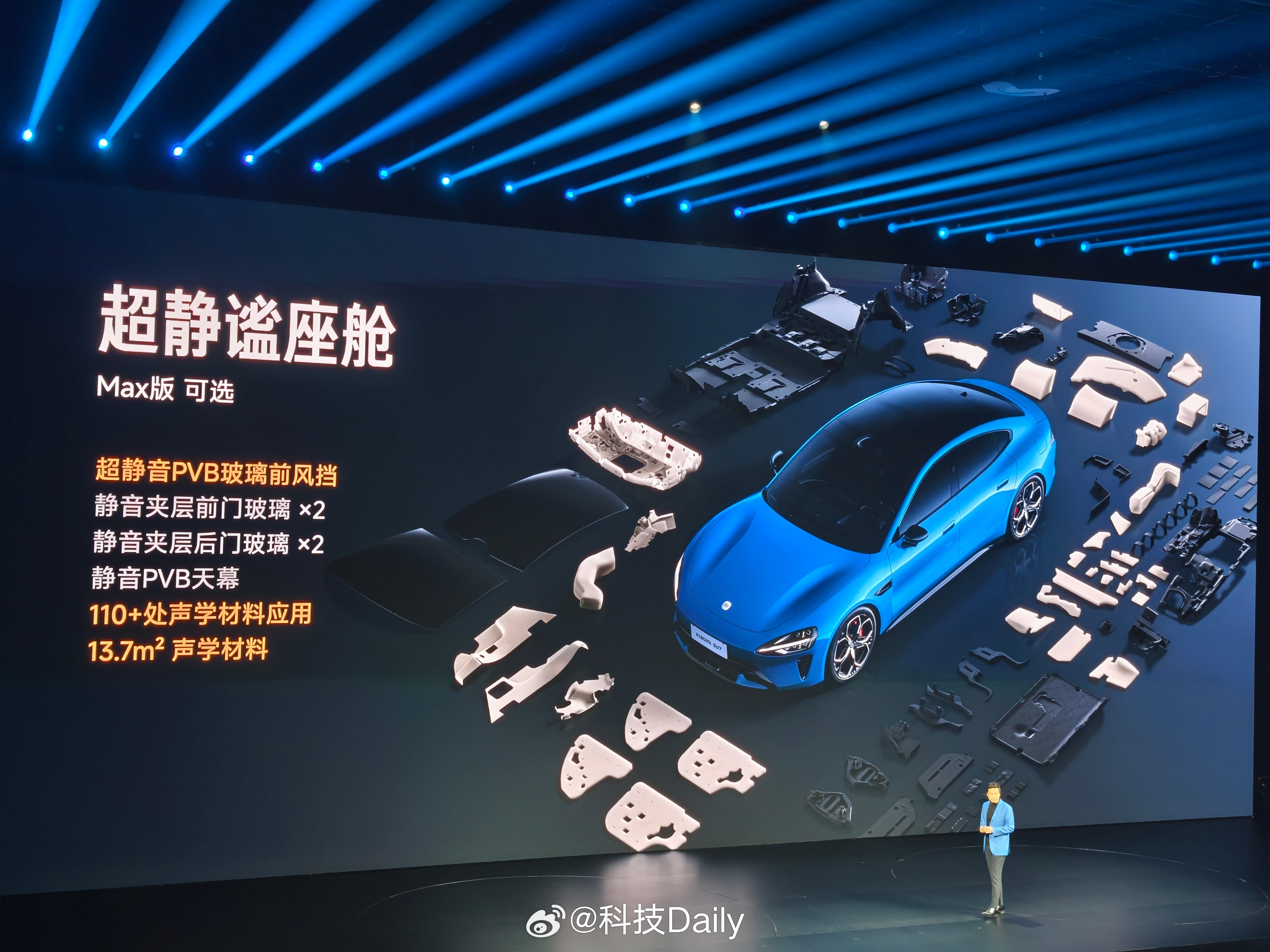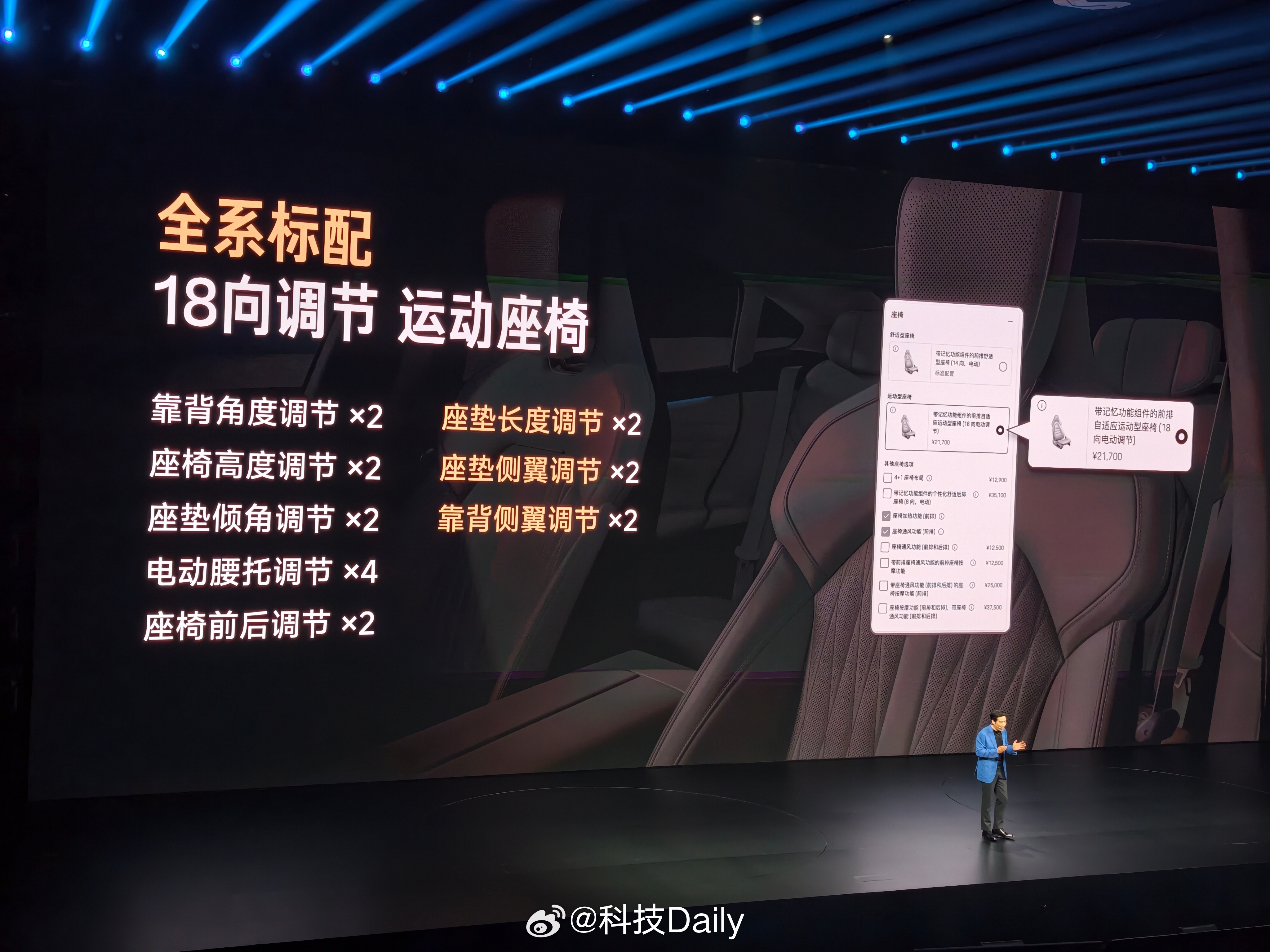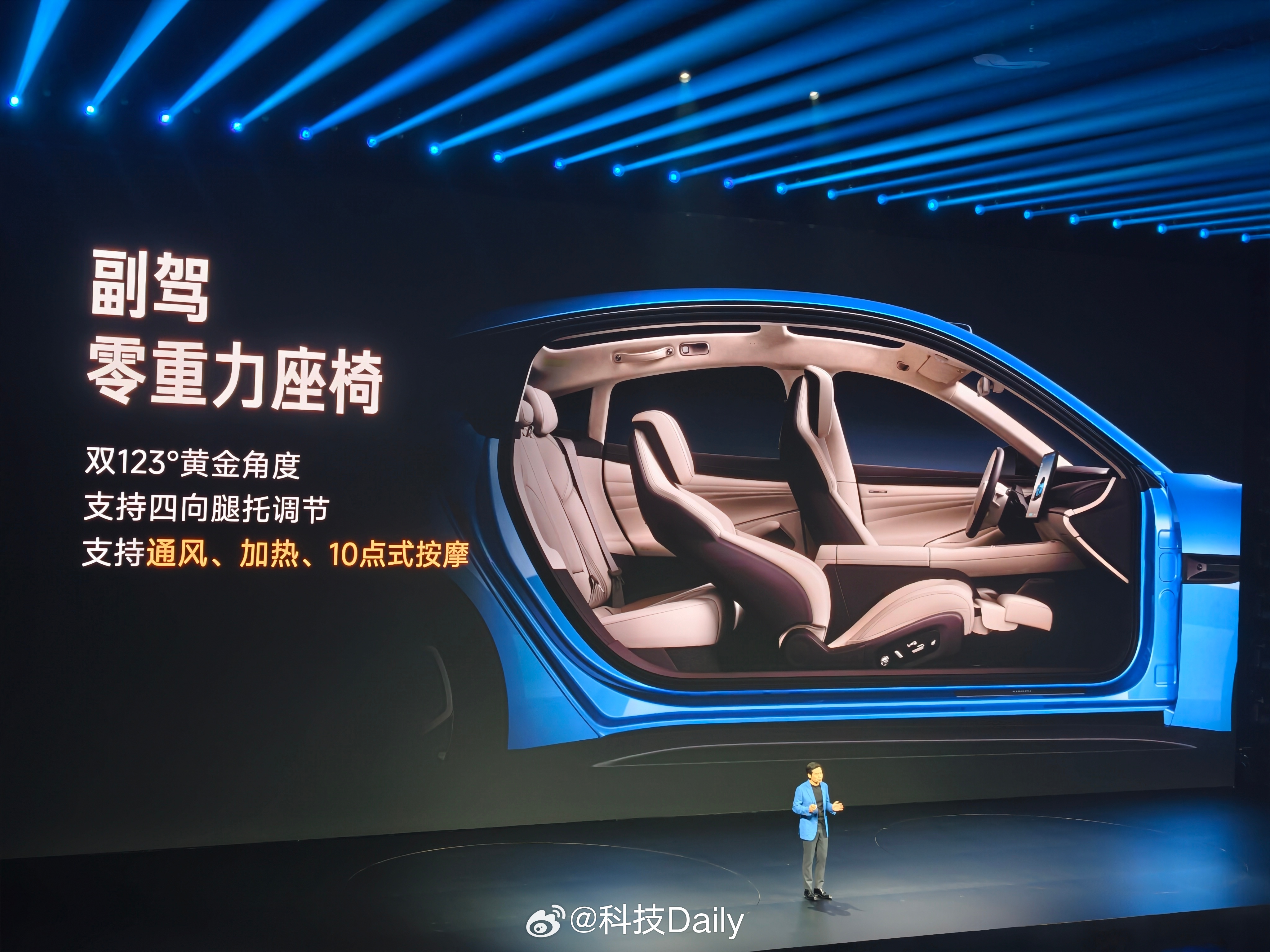 新一代SU7有啥不一样,先看外观,经典比例姿态,卡布里蓝新配色,新鲜感有啦。九款颜色,四大色系,前后摄像头支持高压清洗,这个功能好啊。外观重点看完看内饰,金属色饰板,运动方向盘,质感提升。有意思的是主驾运动座椅,做的更舒适了,支持18向调节,靠边侧翼调节很不错,10点式按摩,主动侧翼支撑全系标配,挺关键的。副驾更是带来了零重力座椅,后排带来了舒适睡眠头枕,100%软包覆细节到位了,感觉必须得试驾感受一下,内饰四款颜色,还是觉得浅色好看,独立压缩机冰箱好评,防晒也是SU7的基本操作,前后排天幕支持单独调节。现场被种草了香薰,想买,感觉就很有品味。小米发布会 北京·小米智慧产业园区