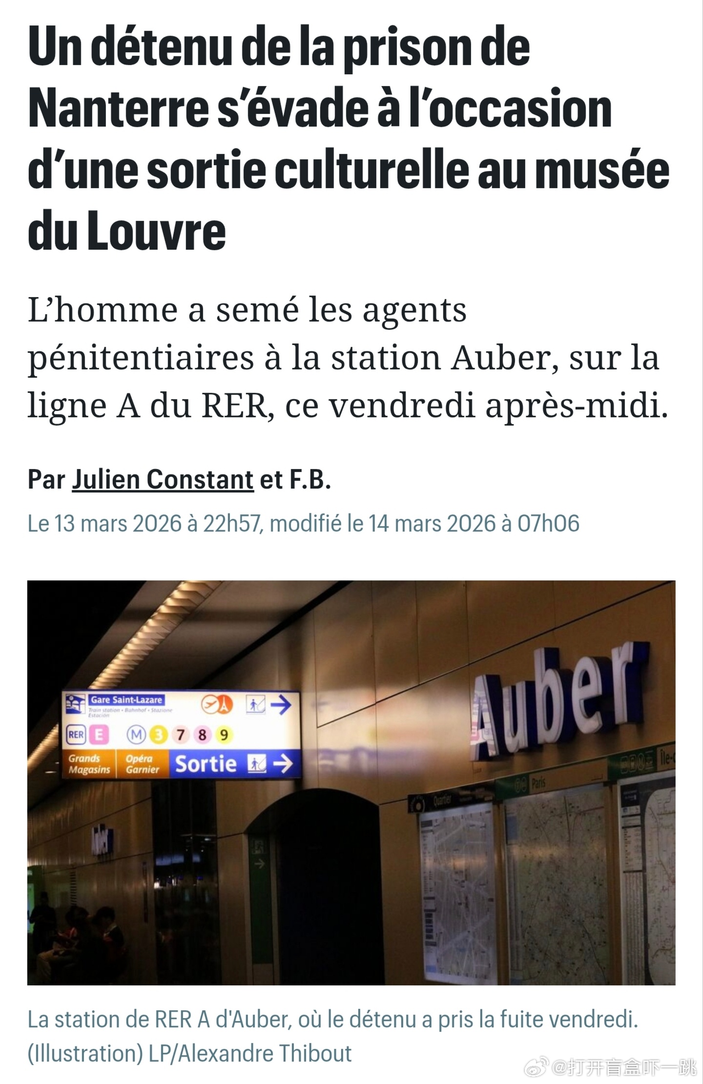 法国警察这办案能力真是不服不行!今年三月份,巴黎西郊南泰尔监狱要搞文化活动提高犯人素质,决定选几个改造典型外出去卢浮宫参观展览,本来出发点是好的,但中途却出了岔子。监狱领导一方面为了避免外逃事件发生,特意派出六名狱警外加多名工作人员全程贴身看管犯人;另一方面又脑洞大开让犯人与狱警乘坐地铁赶赴卢浮宫。不出意外的话就要出意外了,一名犯人在站点换乘地铁时趁狱警不注意突然开启暴走模式一路狂奔,很快就消失在了人海之中。随行狱警当场懵圈,当时这情况上去追吧,害怕留下的其他犯人也暴走外逃;不去追吧,又怕回去要担责任。最后一合计还是先别参观卢浮宫了,几个狱警放弃追捕带着剩下的犯人又坐地铁回监狱去了……前两天外逃犯人终于落网了,不过不是法国警方抓到的,而是塞内加尔警方抓到的,这货竟然在众目睽睽之下从法国成功跑回了非洲老家你敢信?这也就意味着犯人不光要在地铁站摆脱追捕,而且还要换乘地铁到达机场,再以服刑身份购买机票完成安检顺利登机……法国网友齐齐发问:犯人到底是怎么做到的?这还是正规监狱吗?魔金石科技