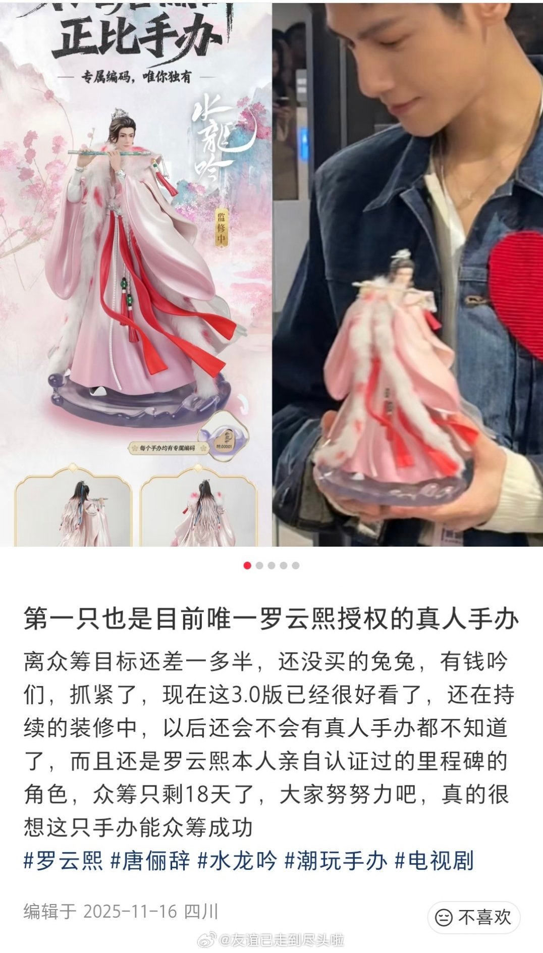 罗云熙粉丝集资200万,单价399的唐俪辞手办,第一只罗云熙授权的真人手办,仇人