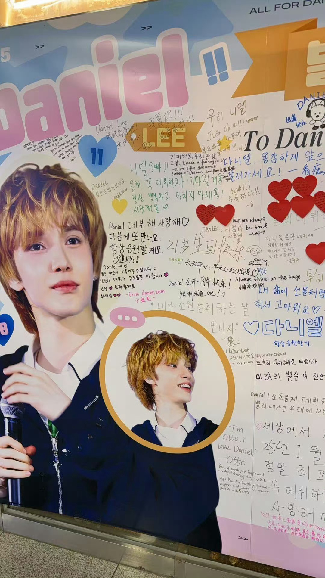 Daniel核桃包店“写封信给你”应援留言墙现状:海报有3.6m*2m长,筹备应援时主办站姐说,要是写不满就拿到fm现场继续写,但到昨天晚上的时候,整面墙就已经被写满,只剩下零星小空隙,墨水虽廉价,但是追星女孩们最纯粹无私的爱意🫶🏻