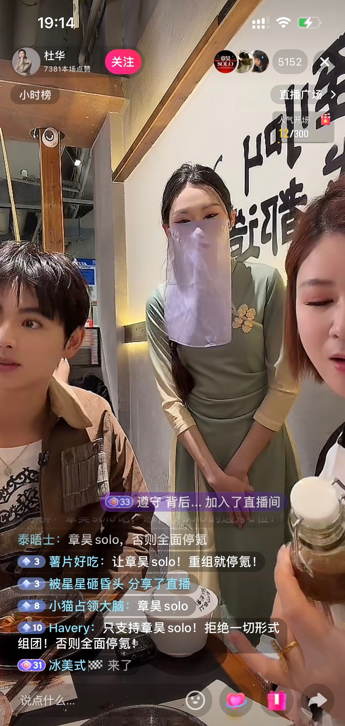 杜华直播被章昊粉丝solo诉求刷屏,“抵制章昊组团 支持章昊solo 不然全面停