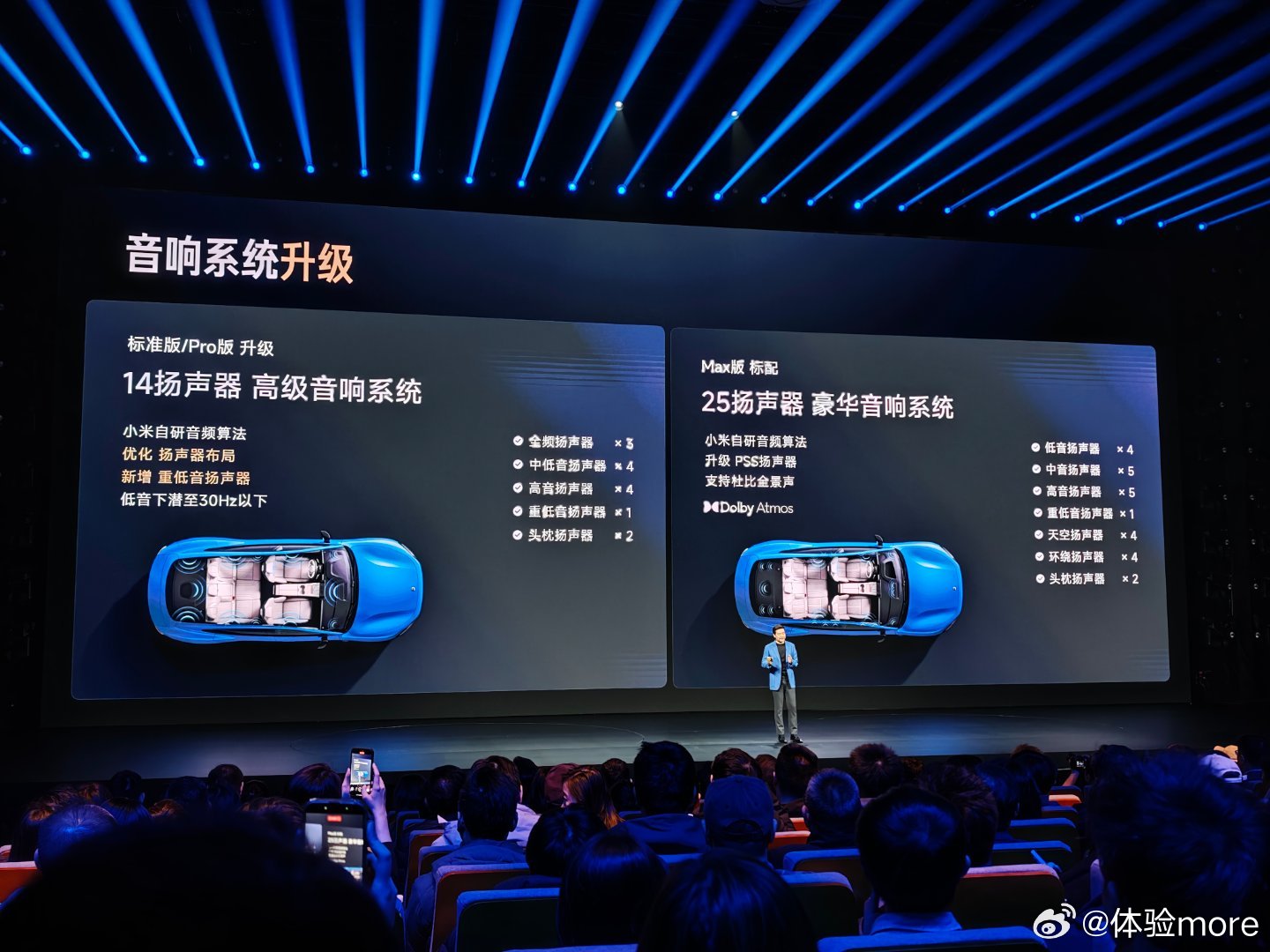 标准版/Pro版升级14扬声器高级音响系统,Max版标配25扬声器豪华音响系统。