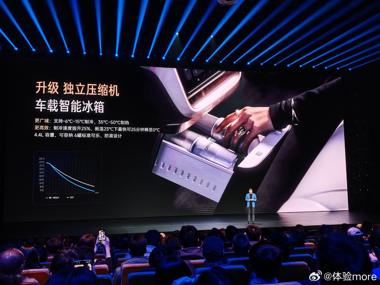 小米新SU7升级独立压缩机车载智能冰箱,支持-6℃-15℃制冷,35℃-50℃制热。