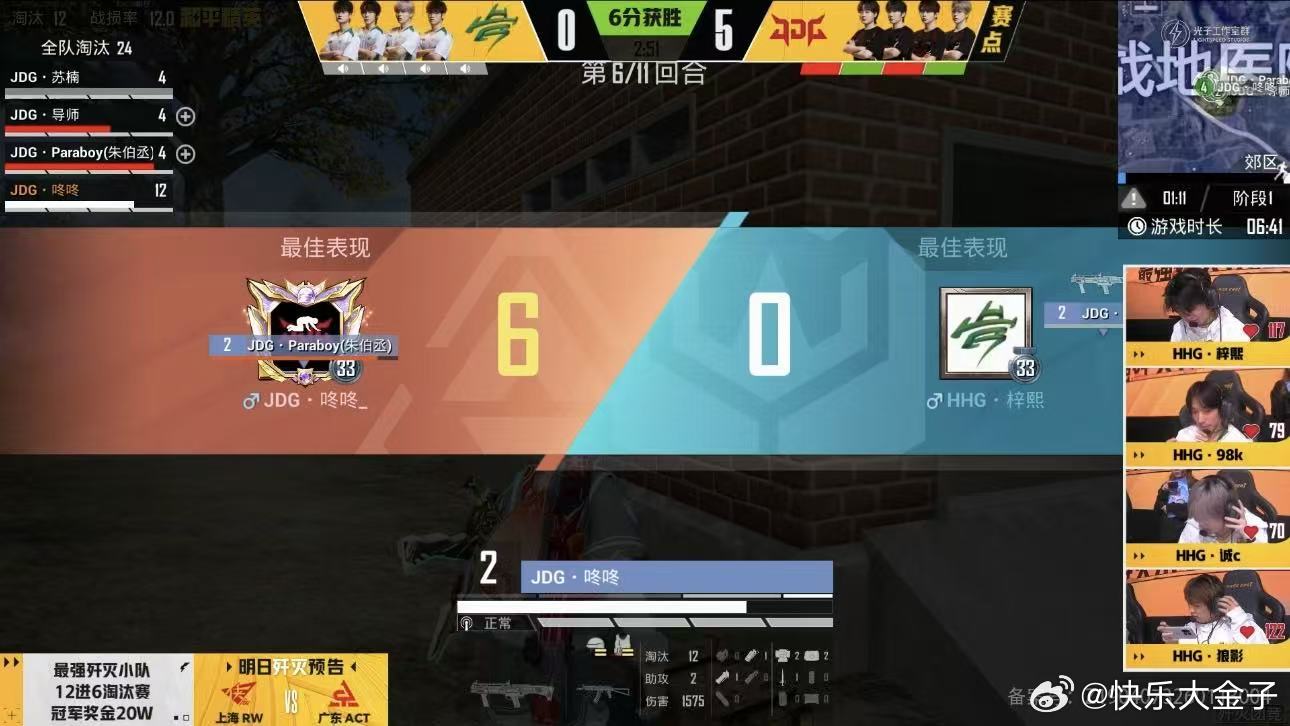 JDG零封晋级六强 JDG歼灭赛零封HHG,晋级六强。JDG和平精英