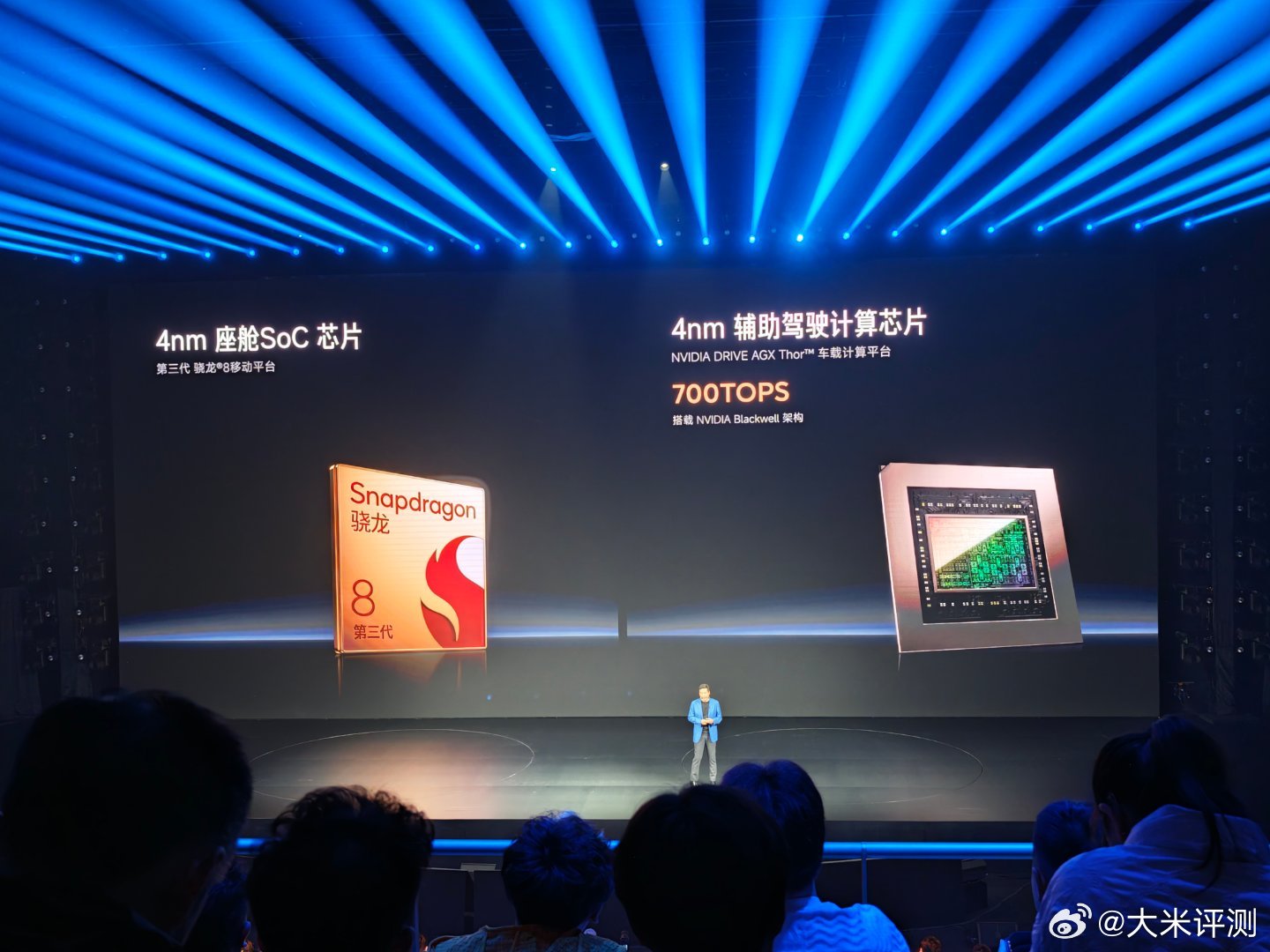 四合一域控制器,座舱芯片,辅助驾驶芯片和YU7一样。