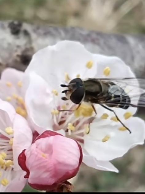 北方, 春天的第一树花——杏花。 粉白相间,杏花如雪, 洒满枝头。 微风吹过,