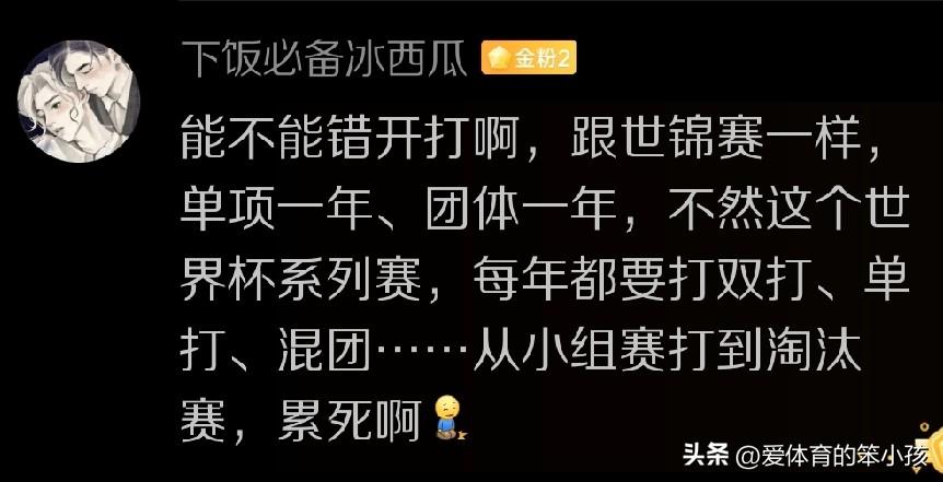 按照媒体人野生胖球数据的最新消息,未来的2027乒乓球世界杯上,将在男女双打项目上也增加世界杯比赛项目,这就让双打项目和单打、混双还有团体项目一样都有了奥运会、世界杯还有世乒赛三种顶级大赛的单项设置。 这也代表着未来一旦有球员在这三大赛上拿到金牌就有可能成为这几个单项上的大满贯球员。可见对双打项目的竞争力形成,还有比赛打的更激烈精彩以及在奥运会上对此项目给予更大的关注和看重,都会带来一定的帮助。 只不过这对一线球员本身无疑提高提出了更高的体能还有专注度,以及比赛状态包括身体伤病控制等方面都会提出更高要求。 相比较而言,肯定是外协会的一些高手更喜欢这种设项方式。毕竟他们更容易根据自身特长,选择专注于双打或者混双项目,又或者单打项目,还可以利用他们的体能优势身兼多项,又可以实现跨协会的组合,来力争有所突破,争取拿世界冠军,甚至奥运冠军。 这对那些外协会球员争取在这些不同项目上有所突破,并找准突破口走向世界顶级球员行列,争取成为世界冠军和奥运冠军带来了更便利的条件。也有了更多不同方向道路的选择机会。 当然这种情况同时也对韩国乒乓球队,日本乒乓球队,德国乒乓球队,法国乒乓球队,瑞典乒乓球队等这种世界顶级强队,提出了更高的用人方面的要求,以及状态保持方面的标准方面的提升。 也让我们一起看一看,当这种团体赛,单双打,包括混双项目等多个项目都成为奥运会比赛项目时,乒乓球大项的竞争又会迎来怎样的格局?国乒团队在综合竞争实力占优的情况下,还能否在这些新设项目上继续有所突破,并争取保持竞争优势,拿到更好的成绩,同时在奥运会上力争更多枚的金牌。也让我们一起继续给国乒整个团队加油!