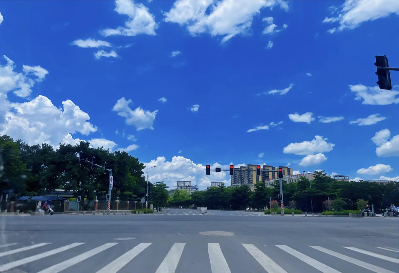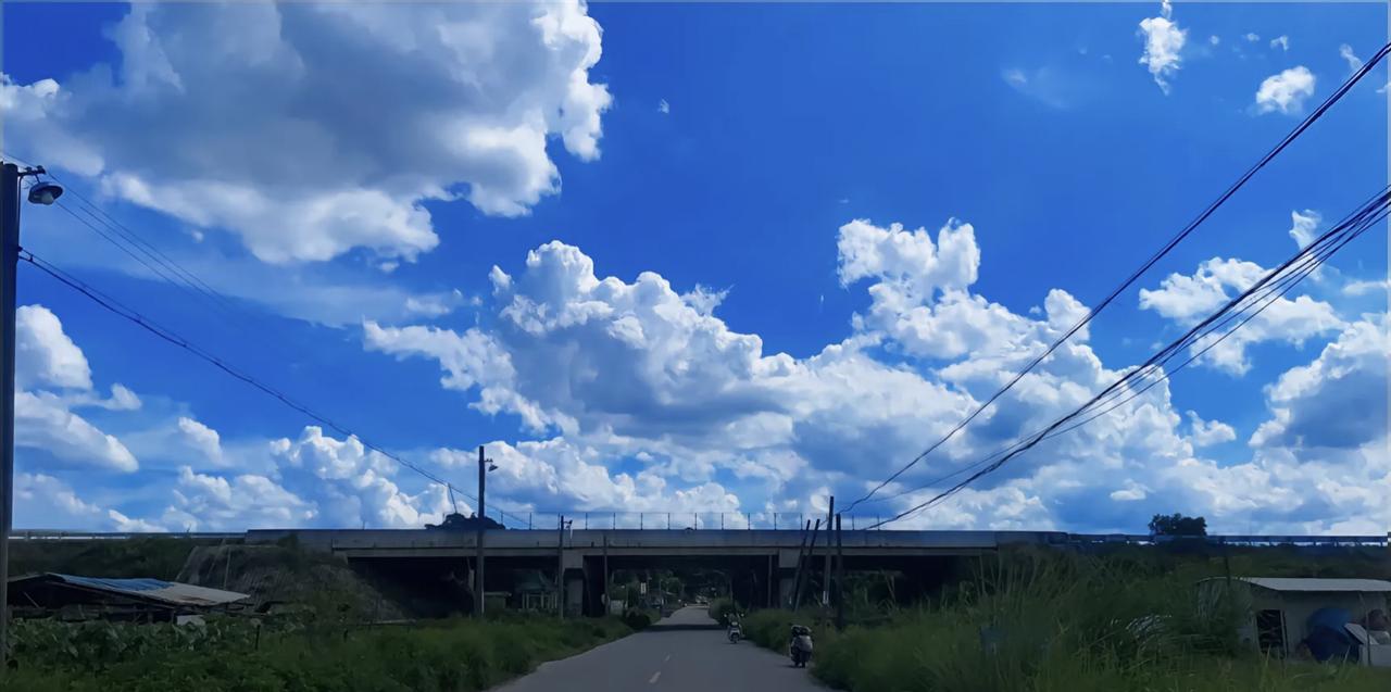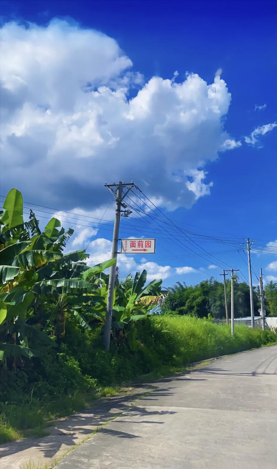 蓝天白云下的乡间小路,静谧而美好。