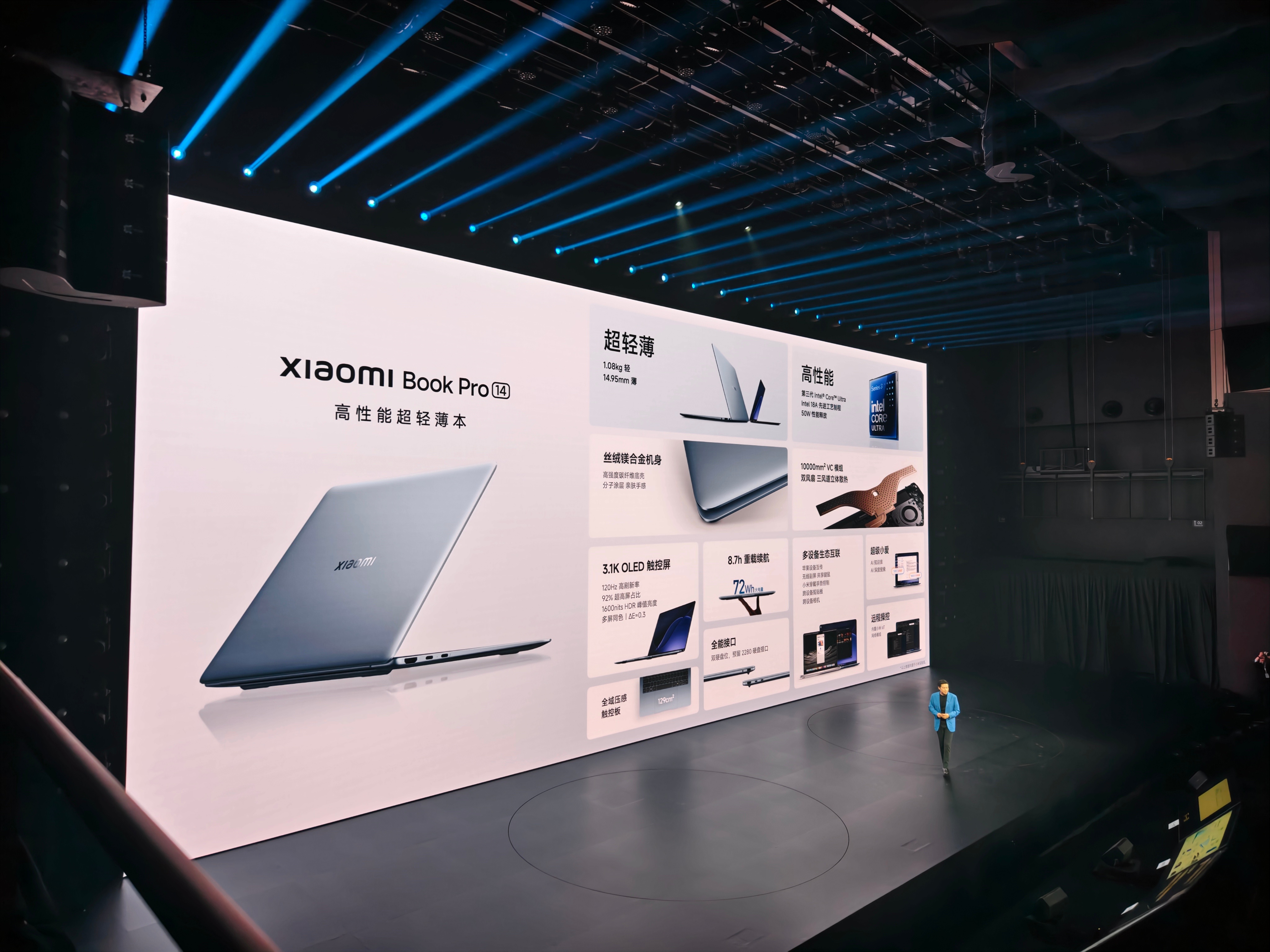小米笔记本Pro148499元起的高性能超轻薄本1.08kg丝绒镁合金机身至高搭载酷睿Ultra X7 358H50W高性能释放采用3.1K OLED屏19.8小时长续航、支持远程关机唤醒