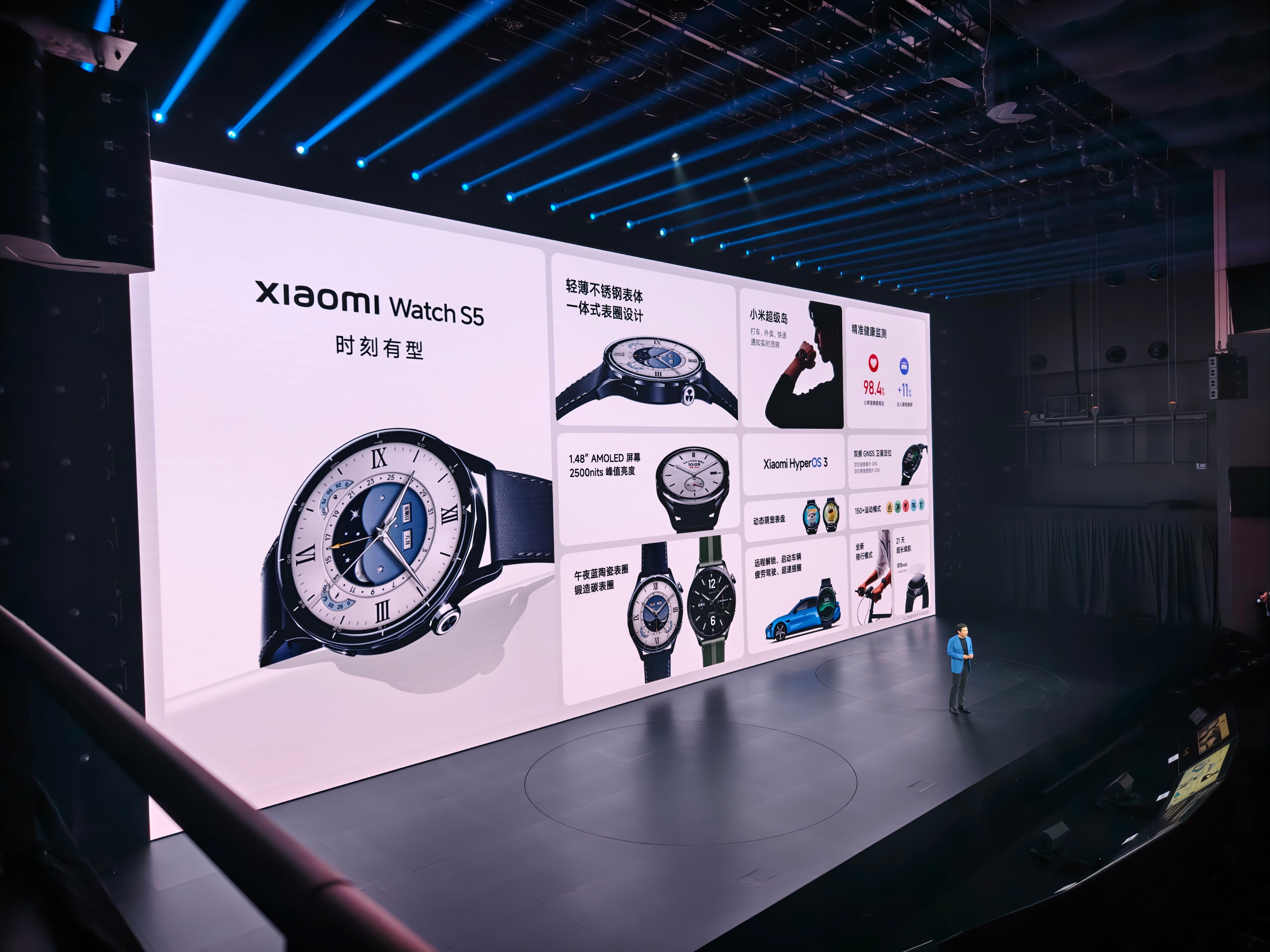 再来看看两款新品~小米手表S5 1199元起一体式表圈设计、21天长续航支持腕上控车,安全驾驶、导航实时提醒支持腕上控家,随时查看门锁画面出门在家一手拿捏