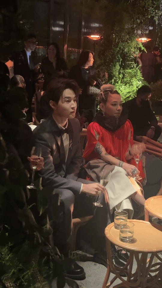 Henry范晓萱同框鲜艳的红衣和黑色西装香槟omg,刘宪华和范晓萱两个人同框真的