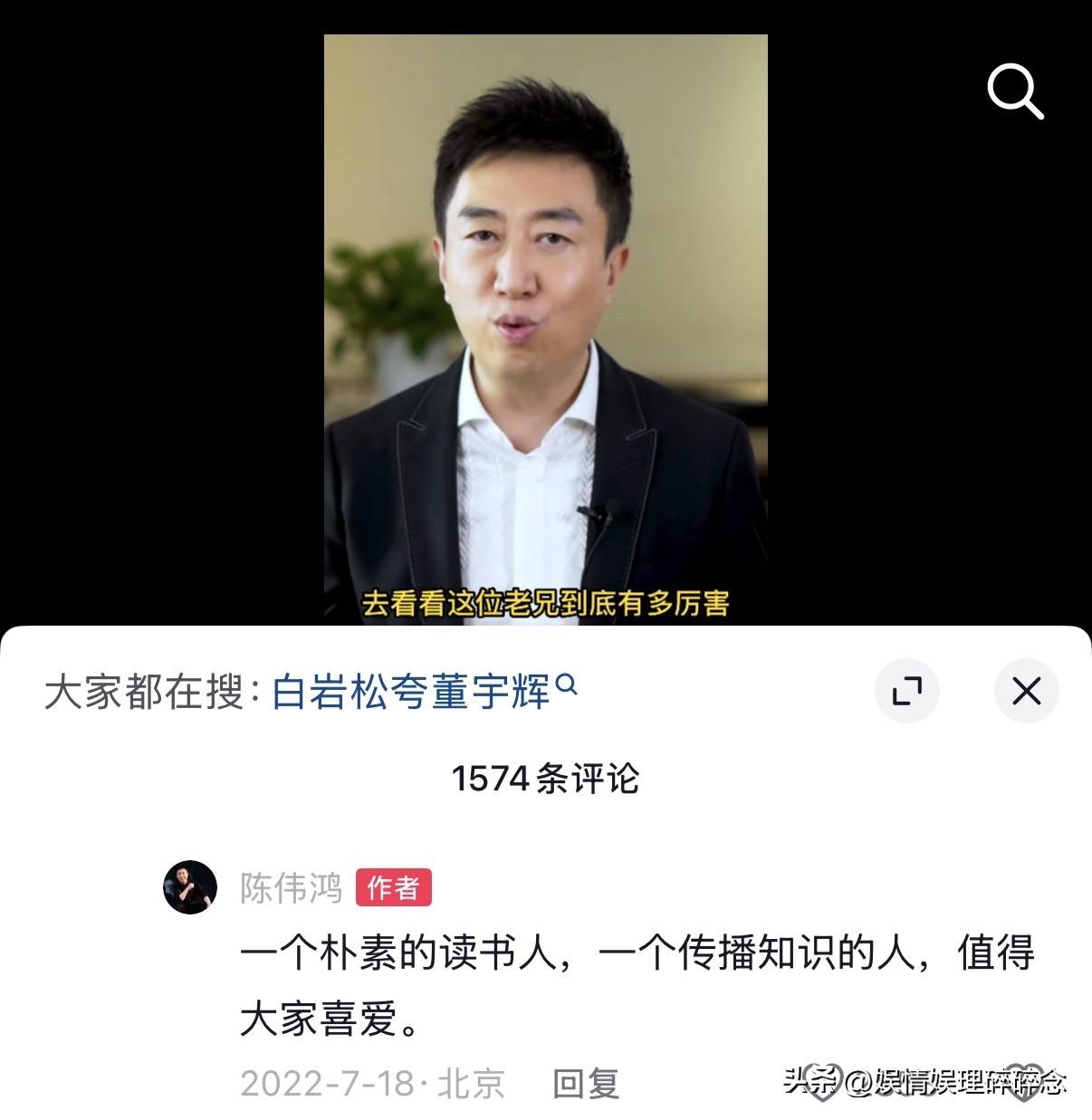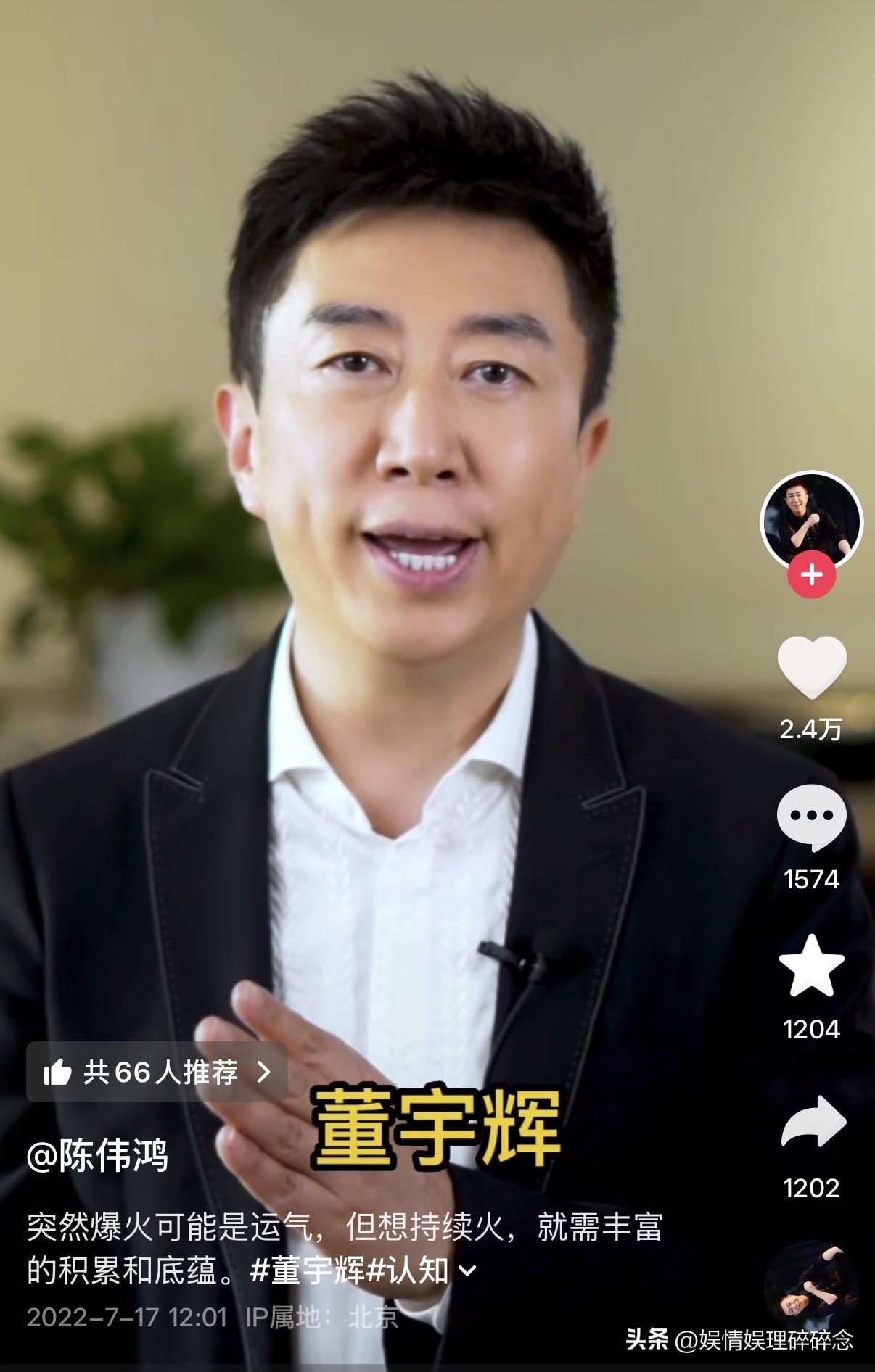 “苦心人,天不负”——这是央视主持人陈伟鸿在2022年对董宇辉的评价! 没想到,四年后,他们会在珠海同框。 2022年6月9日,是宇辉爆火出圈的日子。时隔一个多月后的7月17日,陈伟鸿专门发了一条视频谈董宇辉,他说自己悄悄进入宇辉的直播间,想知道这位老兄有多厉害,看完发现他真的与众不同。 他的不同不是指颜值,而是和他个人的累积有关系,看书应该是让他能持续火下去的重要理由。 陈伟鸿说,一个爱看书,一直坚持磨炼自己的人,让他拥有了非常丰富的知识结构、文化积累和底蕴,才让他能在自己的直播间和观众热心真诚的交流,和观众产生了共情或共鸣。 那时候的宇辉才爆火出圈一个多月,而陈伟鸿已如此笃定他会持续火下去,而不是昙花一现。 四年过去了,陈伟鸿和宇辉又在珠海那场直播电商盛典上相遇,我能想象,当时的陈伟鸿看到宇辉站在舞台中央时那种欣喜和骄傲。 宇辉没有昙花一现,反而越走越稳,正如陈伟鸿当年在评论区说过的话一样——“一个朴素的读书人,一个传播知识的人,值得被大家喜爱!” 这一路,宇辉用行动证明了: 所有的光芒,都源于漫长的积累; 所有的好运,都藏在不为人知的努力里。 他没有辜负自己,也没有辜负喜欢他的人! 董宇辉