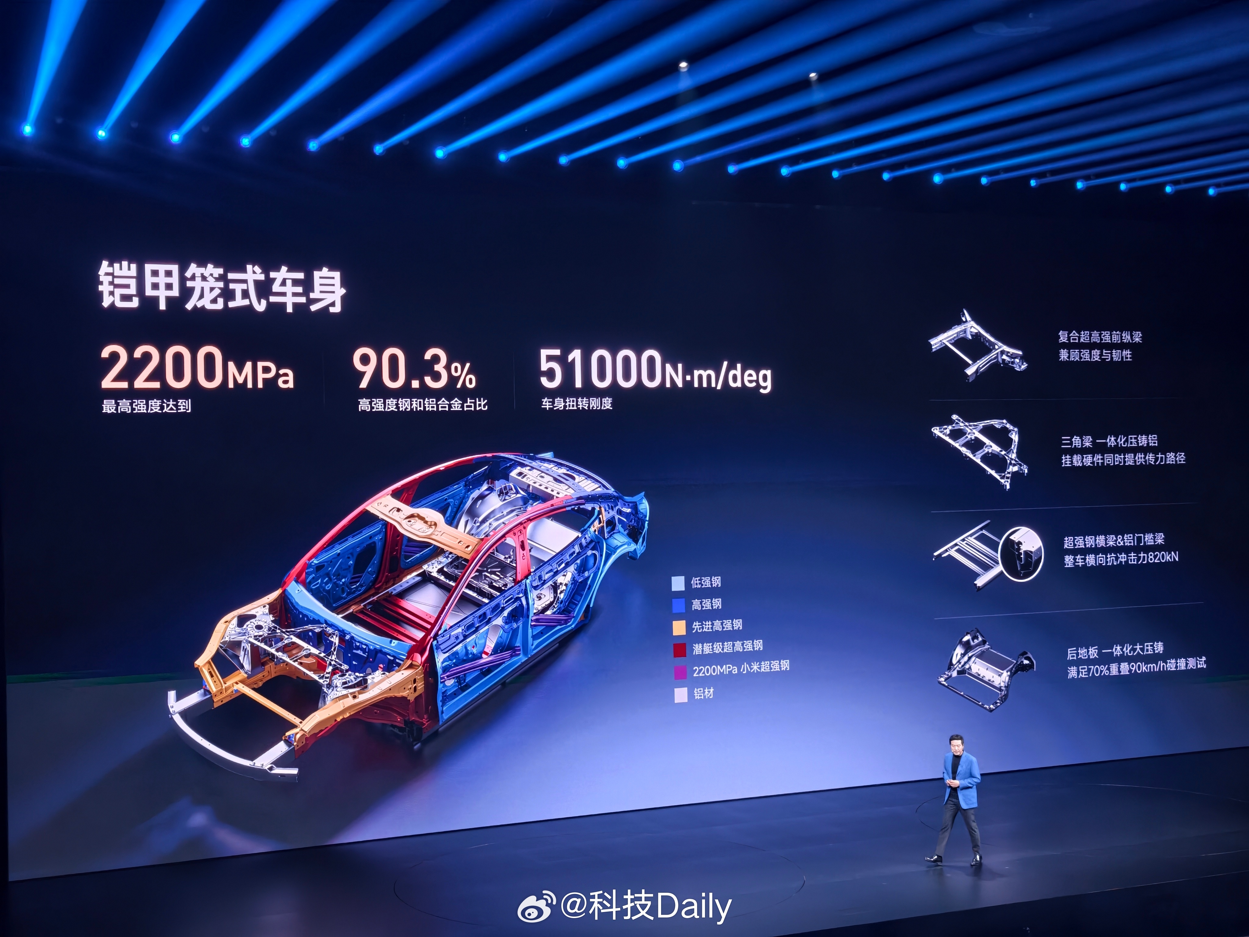 驾驶者之车小米下功夫的,蛟龙底盘有点东西,精准稳定安全,靠谱。湿滑路段主动提醒挺好的,功能不仅要有,也要确保能用上。新一代SU7全系搭载V6s Plus 超级电机,Max版零百加速3.08s,Pro版 CLTC续航902km,Max版CLTC续航835km,标准版CLTC续航720km,心动么?智能进阶方面,域控制模块四合一,电子电气架构升级。小米发布会 小米汽车 座舱这块确实好,开机流畅,用的方便,人车家全生态控制,方便协同米家生态,还能和Xiaomi WatchS5 46mm打配合。全系配备激光雷达,辅助驾驶硬件到位,小米XLA认知大模型,多模态,更高效,更可控,认知驱动,期待表现,AES也有了。安全贯彻方面,全系2200MPa「内嵌式防滚架」& 四门防撞梁,全系9个安全气囊,2027新国标门把手,门锁备份电源,全方位的安全都下足了功夫。现场代言人来了,还送了大麦祝福大卖。标准版本不涨价,ProMax贵四千,怎么样觉得如何。 北京·小米智慧产业园区