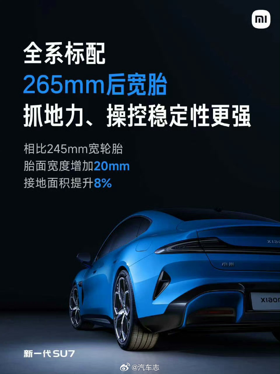 新一代SU72026年的新车都重视宽胎了,后轮SU7 265mm,启境GT7 275mm,极氪8X 曜影 315mm