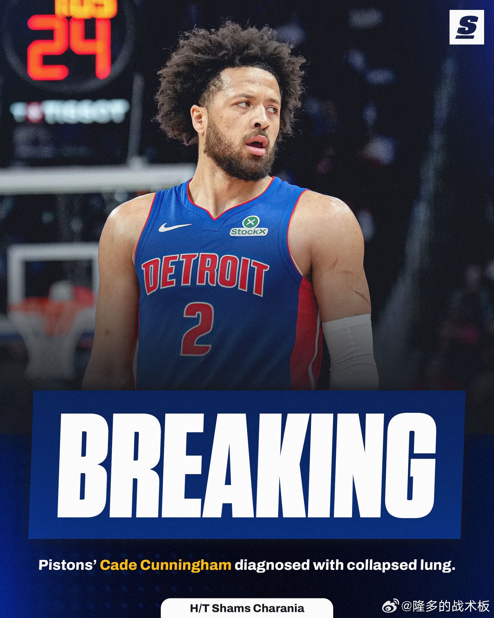 CJ-麦科勒姆曾在2021年因肋骨撞击诱发右侧轻微气胸,休战了6周时间复出,2023年再度气胸复发。