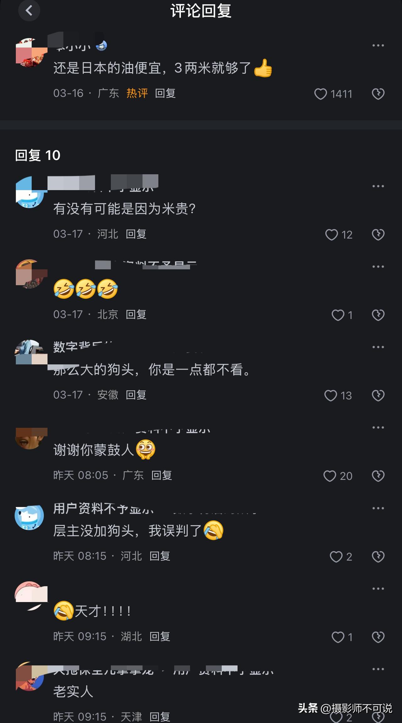 我严重怀疑这是在钓鱼,只是这只狗头稍微大了一点,可能暴露了意图。在网上有人问“如何看待2026年3月13日日本油价暴涨,有哪些细节值得关注?”。本来这是一个非常正常的问题,但下面一哥们儿回复绝了“别扯那些没用的,在中国得花3斤大米才能换一升汽油,人家小日子花3两大米就能換一升了”。但很让人失望,在这个回答的评论区被人一下子就识破了是在钓鱼,主要是意图太明显了,也从侧面说明了现在的鱼也变谨慎了,不是什么勾都乱咬的。因为稍微关注一点国际局势的人都知道,本子的米价都快升天了,现在油价又有起飞之势。相当于这哥们儿一句话嘲讽了本子家两次,厉害了!