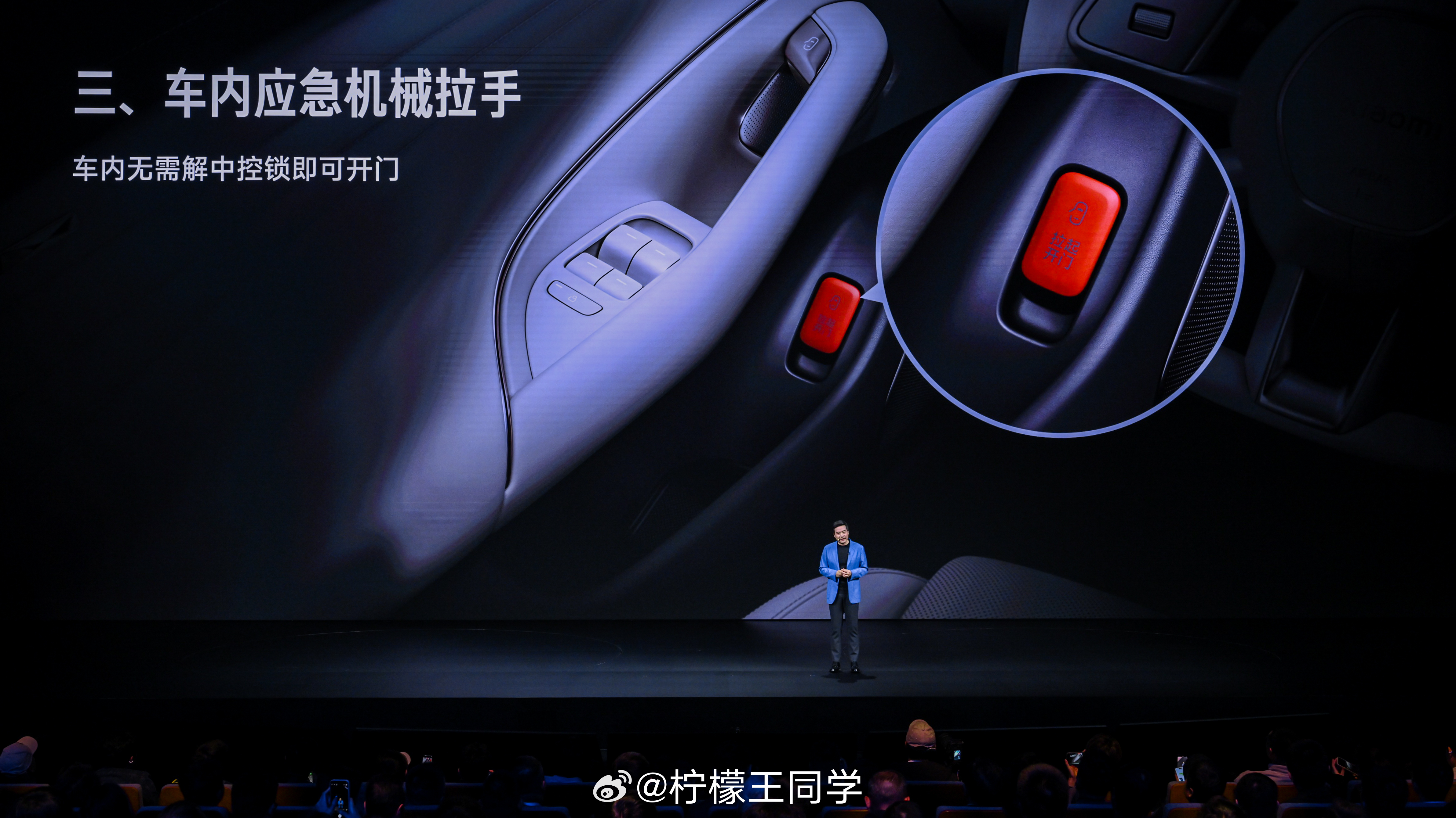 在制造的时候还有个小插曲,就是紧急开门按钮上的字不符合新国标标准,雷总还是要求全部换掉,必须完完全全符合新国标,可见小米对这一块的重视