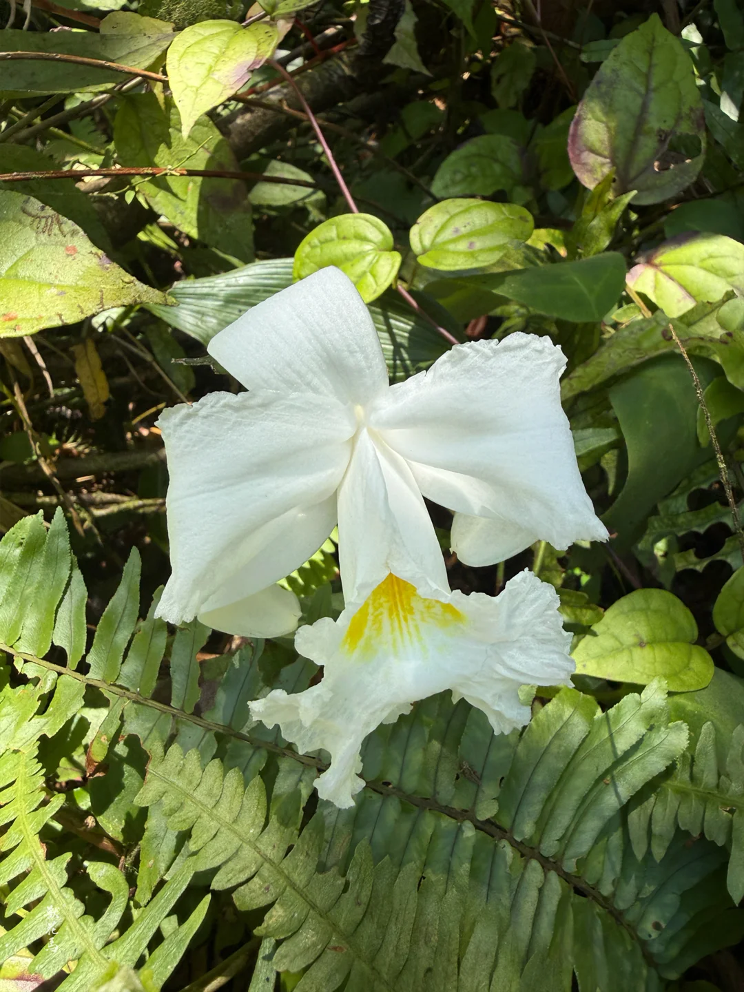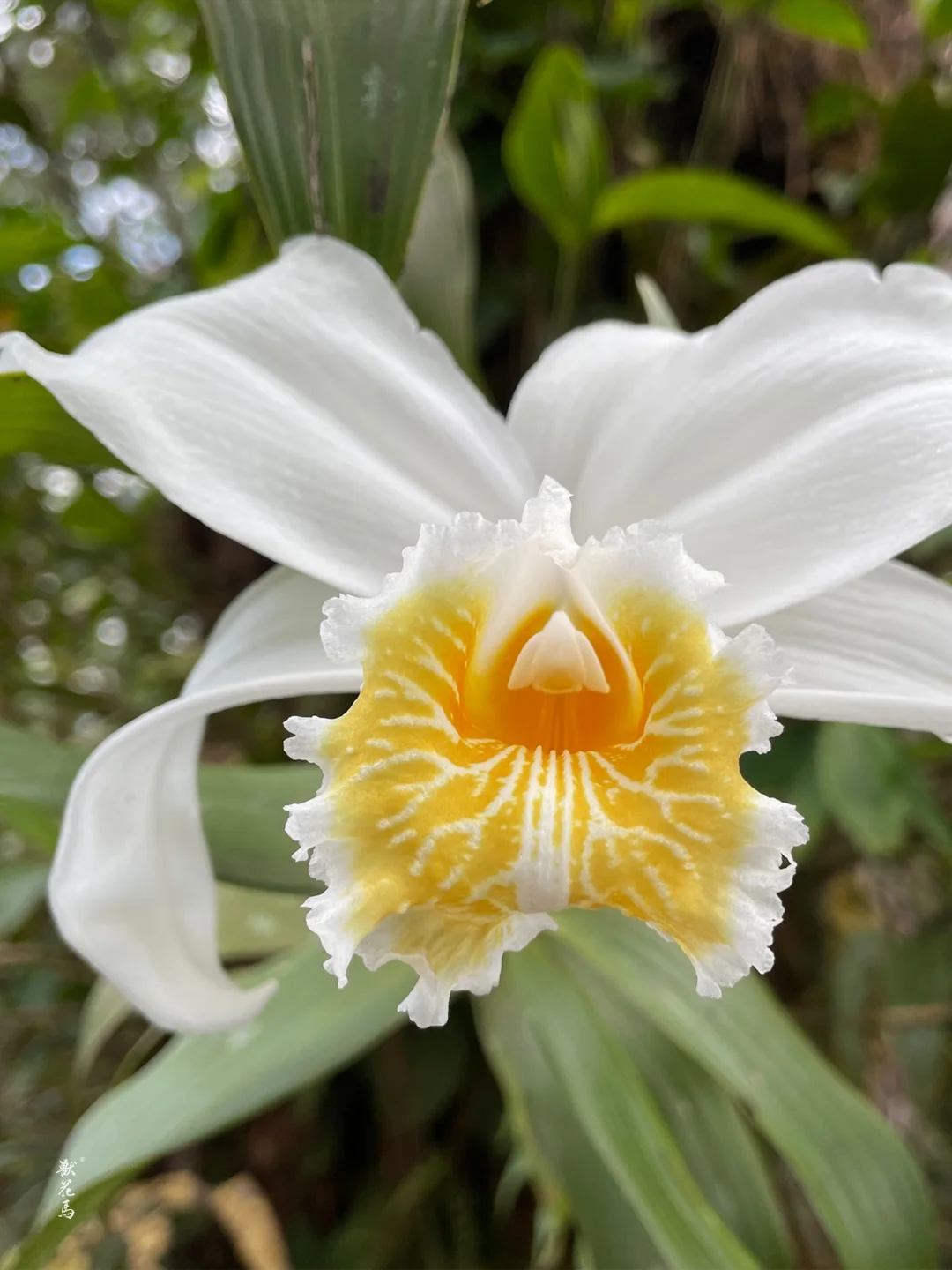 ✨花朵硕大惊艳,花瓣洁白,唇瓣呈现华丽的金黄色,喉部带有栗红色斑纹