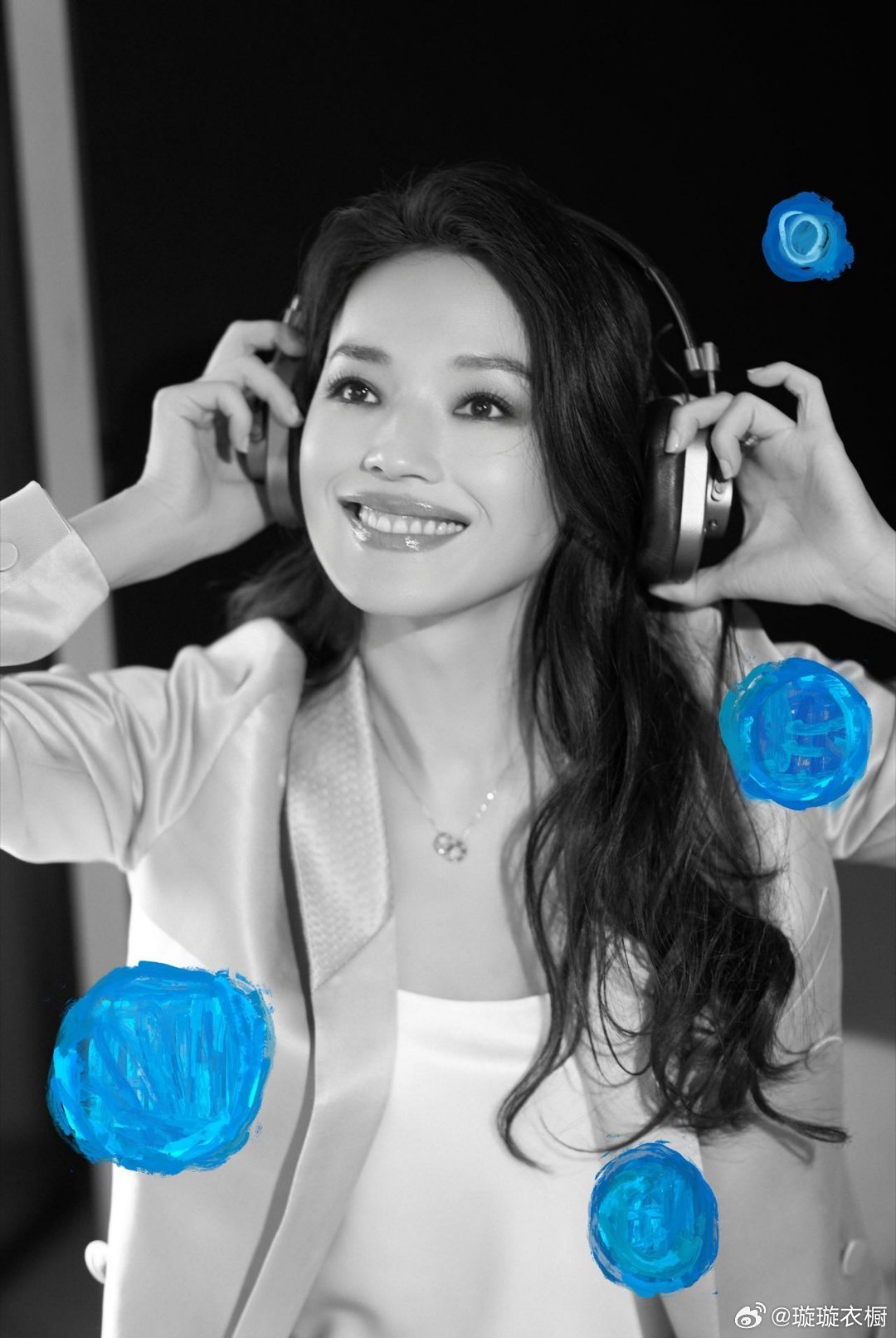 舒淇银线缠绕耳廓,音符在发梢跳圆舞曲,黑白镜头也藏不住眼底星光。舒淇太美了~舒淇西装配半裙也好美
