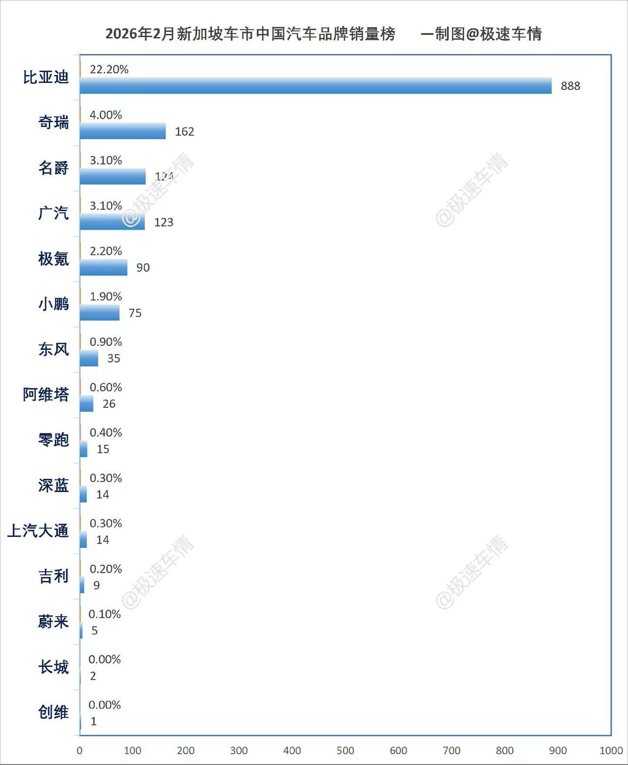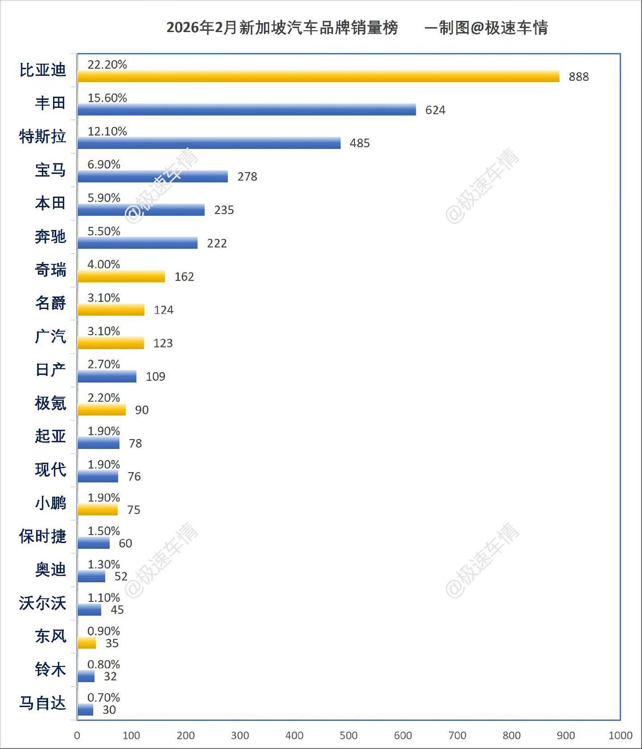 2026年2月,新加坡汽车销量排行榜!2026年2月,比亚迪继续制霸新加坡车市,这已经是比亚迪连续第13个月在新加坡车市夺冠了!极速车情 比亚迪 新加坡 厉害了我的车
