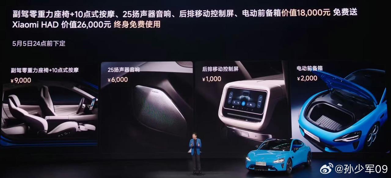 孙少军:小米SU7新款,起步价21.99万! 从业群都在边看边讨论,最近热度最高的一场发布会了[笑哭] 购买的消费者要注意一下,最低配的车型有很多科技配置需要额外选装,选装的价格也不是很贵,高配车型则标配这些东西。 总体而言,竞争力相比较前面发布的产品确实是高了。各位是怎么看的?欢迎评论区留言。