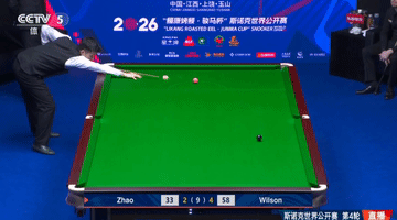 没想到赵心童会输,更没想到的是最后的不放弃,那份对胜利的倔强,差点就…… 2-4落后赵心童在第7局形势一片大好(见图2),此时,一个难度不大,打进黑球K开红球堆的球失误了,当黑球弹洞而出时,现场一片哗然……这个失误,让局势一下扭转,丧失了拿下这局的大好形势。 但赵心童没有放弃,尤其是最后落后25分,桌面上只剩下粉球和黑球,赵心童做了好几杆斯诺克,差一点……最终赵心童2-5爆冷不敌威尔逊,无缘玉山公开赛八强。