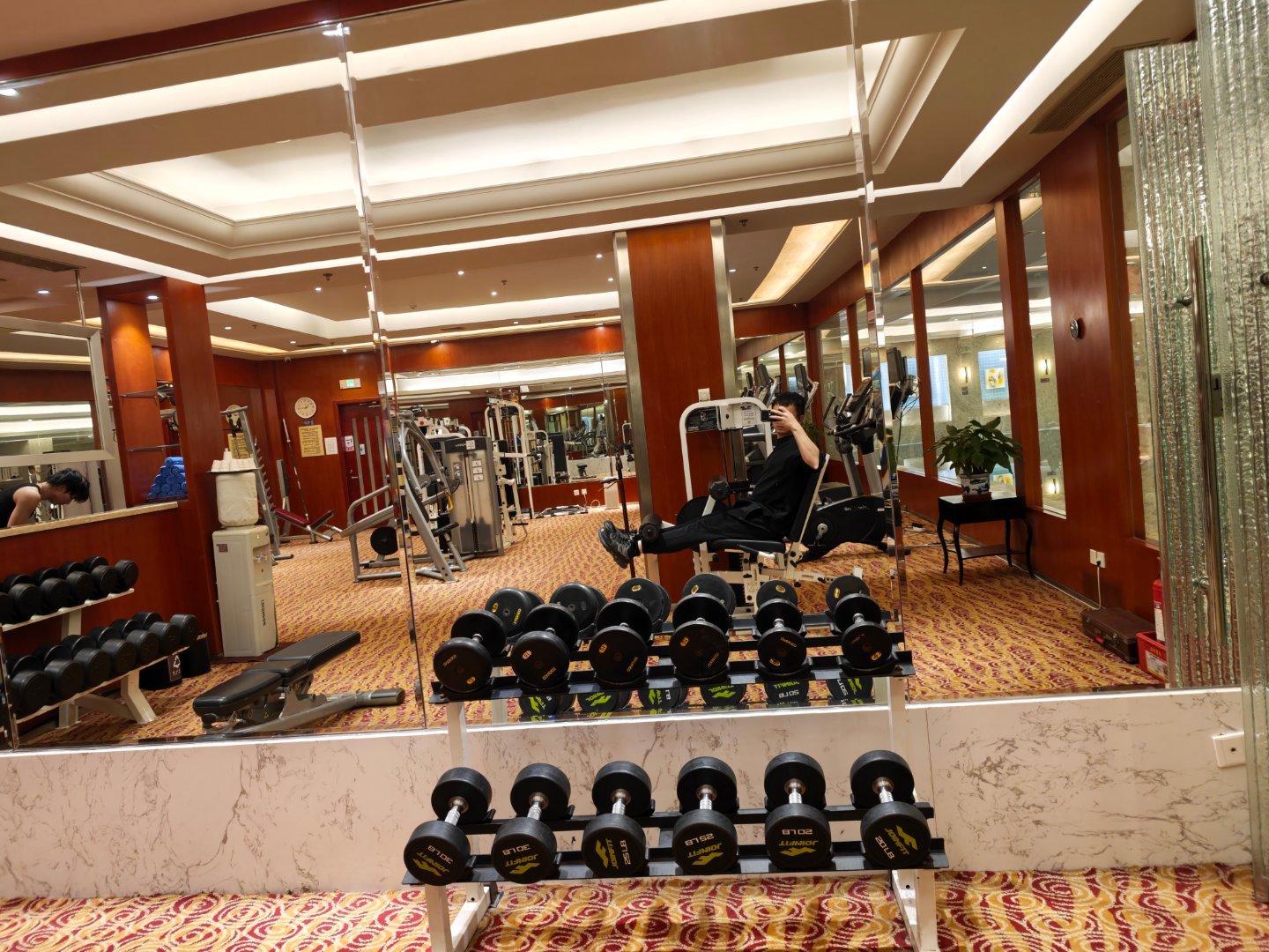 今天这酒店健身房很猛啊,有一个这么大的泳池
