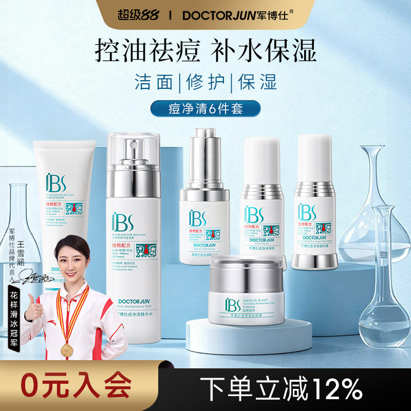 军博仕痘净清护肤6件套装增祛痘保湿面膜3片