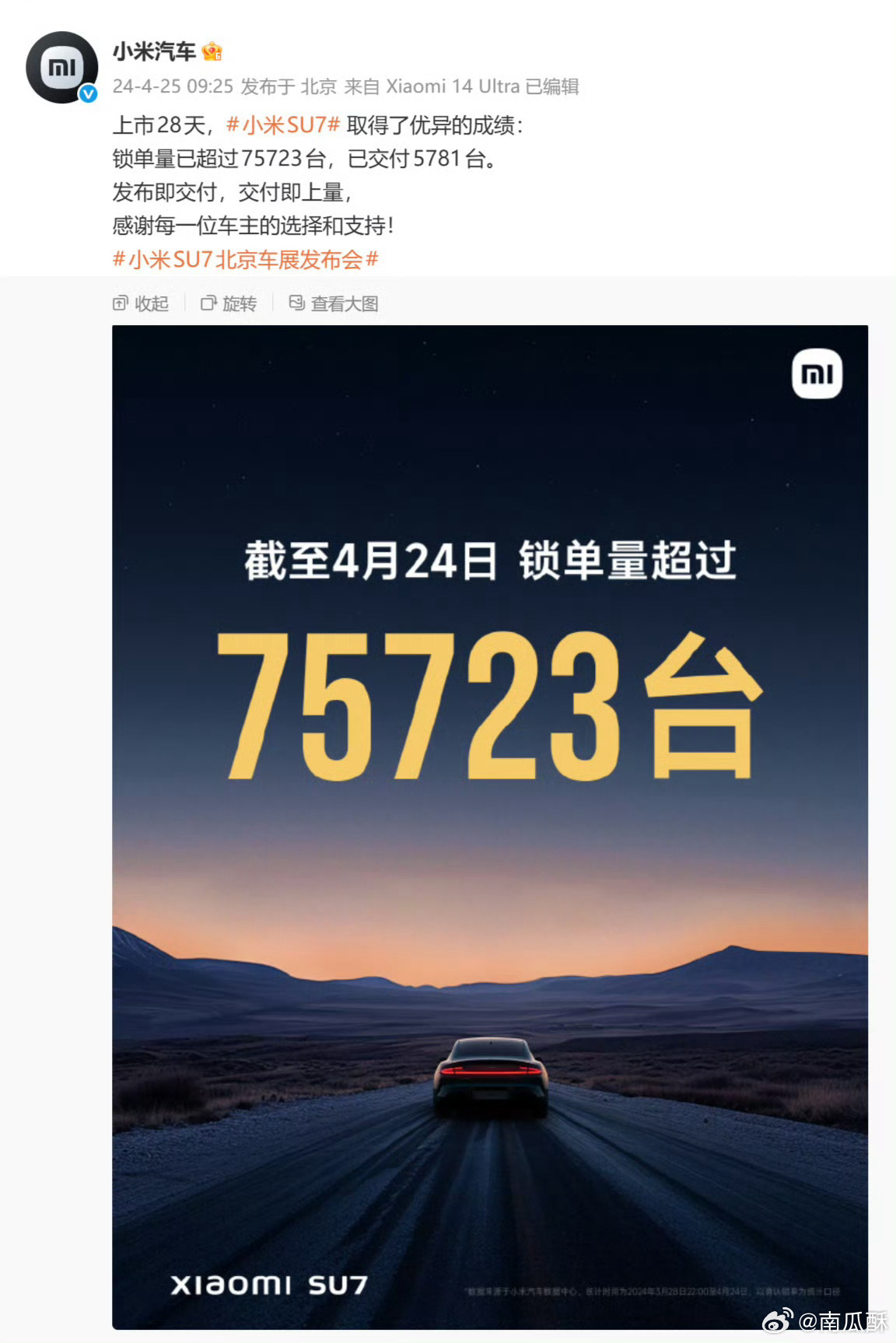我估计小米是不想放一些夸张的数据吓人了,1.5 万锁单对应的大定至少翻三五倍吧?反正无论如何 ,30 分钟卖完了提前准备的所有现车。
